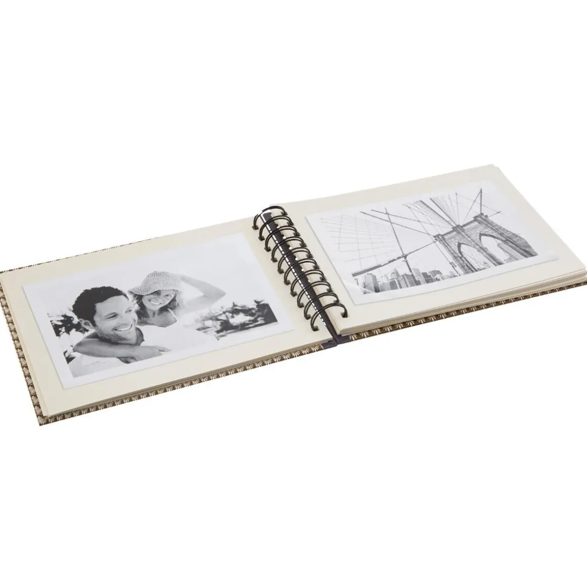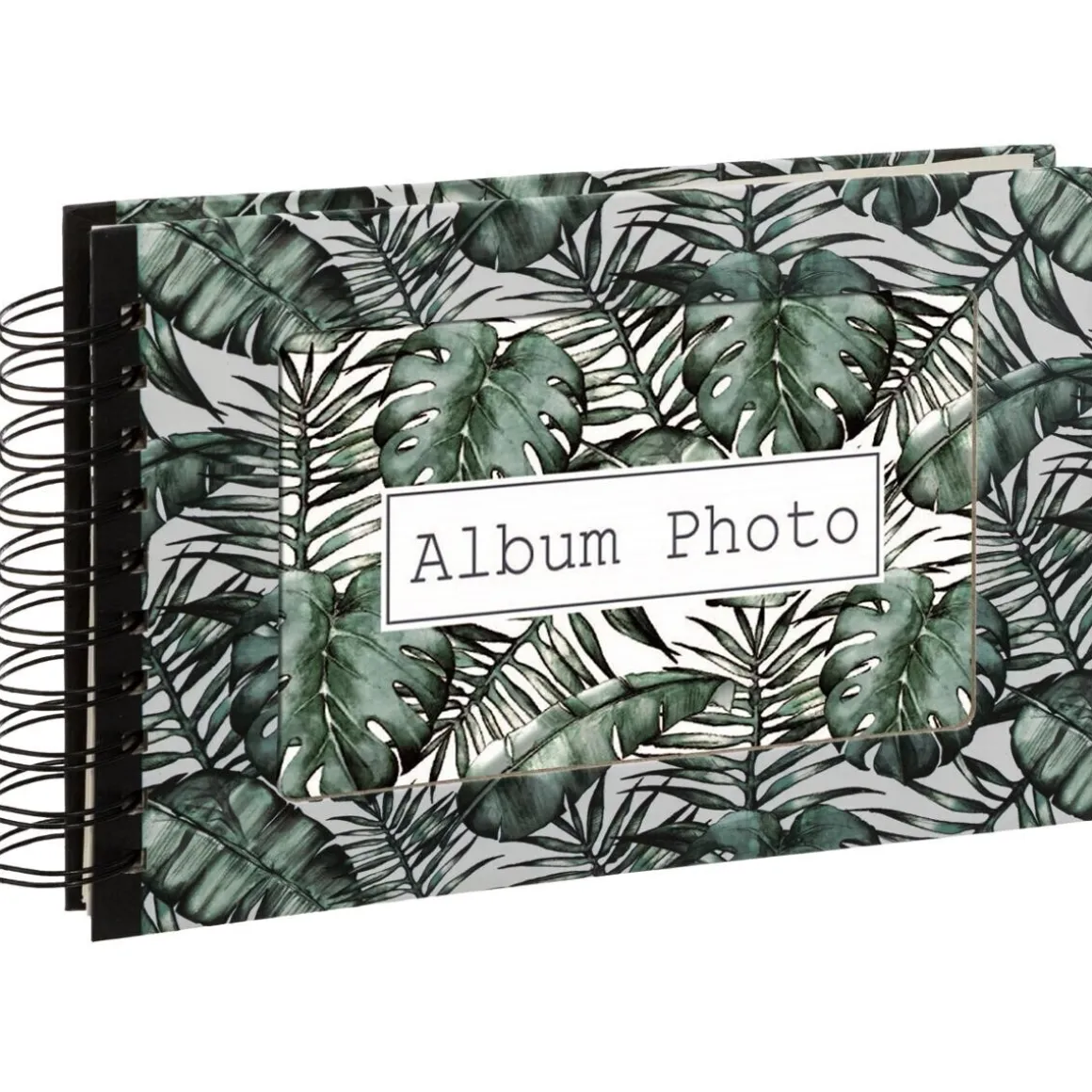 Cet album à spirales « jungle » se distingue par sa couverture cartonnée et son format rectangulaire. Articulé autour de grandes spirales métalliques, il comporte 40 pages qui vous permettront d’organiser et présenter 80 photos. Avec son format raisonnable, il se rangera facilement dans une bibliothèque.