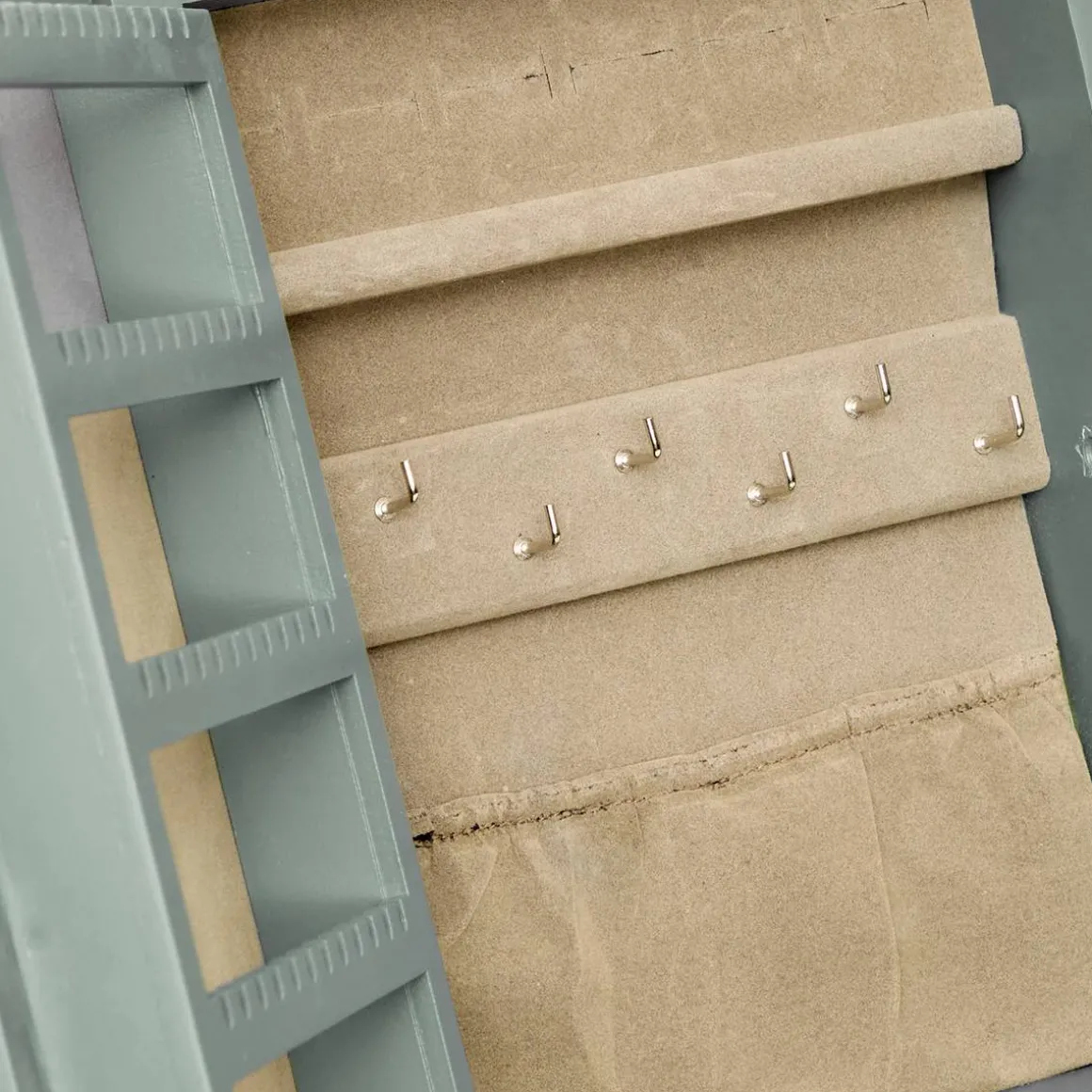 Articulée sur un pied en bois teinté, l’armoire à bijoux Cheri Atmosphera est fermée par une porte à miroir et elle contient une multitude de rangements pour trier tous vos bijoux. Avec 7 crochets, 6 emplacements pour bagues et 60 emplacements pour les boucles d’oreilles, vous pourrez tout visualiser en un clin d’œil. Ses dimensions harmonieuses permettent de la poser sur une commode, dans une salle de bain, un dressing ou une chambre à coucher. Profitez d’un rangement déco esthétique et ludique au quotidien !