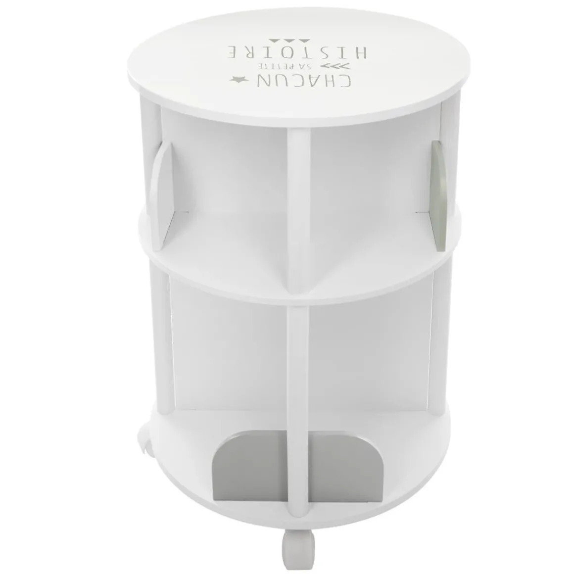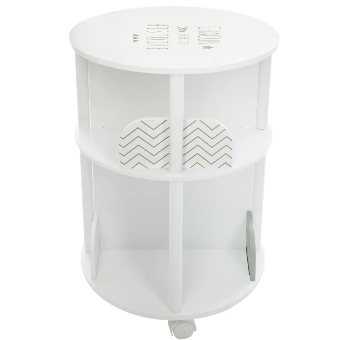 Cette bibliothèque est un petit meuble bien pratique pour créer un bel espace lecture dans la chambre de votre enfant. Fonctionnelle, sa forme circulaire s’agrémente de 8 petits compartiments pour accueillir les livres et autres cahiers de coloriage.