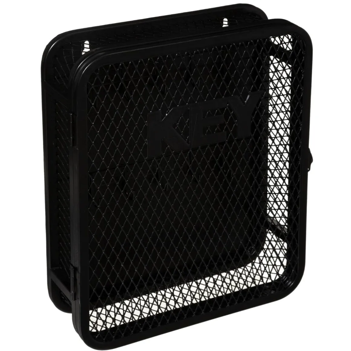 Fixée au mur par 2 vis, cette boîte à clés grillagée en façade s’orne du mot Keys et se ferme au moyen d’un crochet métallique. Vous pourrez y accrocher jusqu’à 10 trousseaux visibles de l’extérieur.