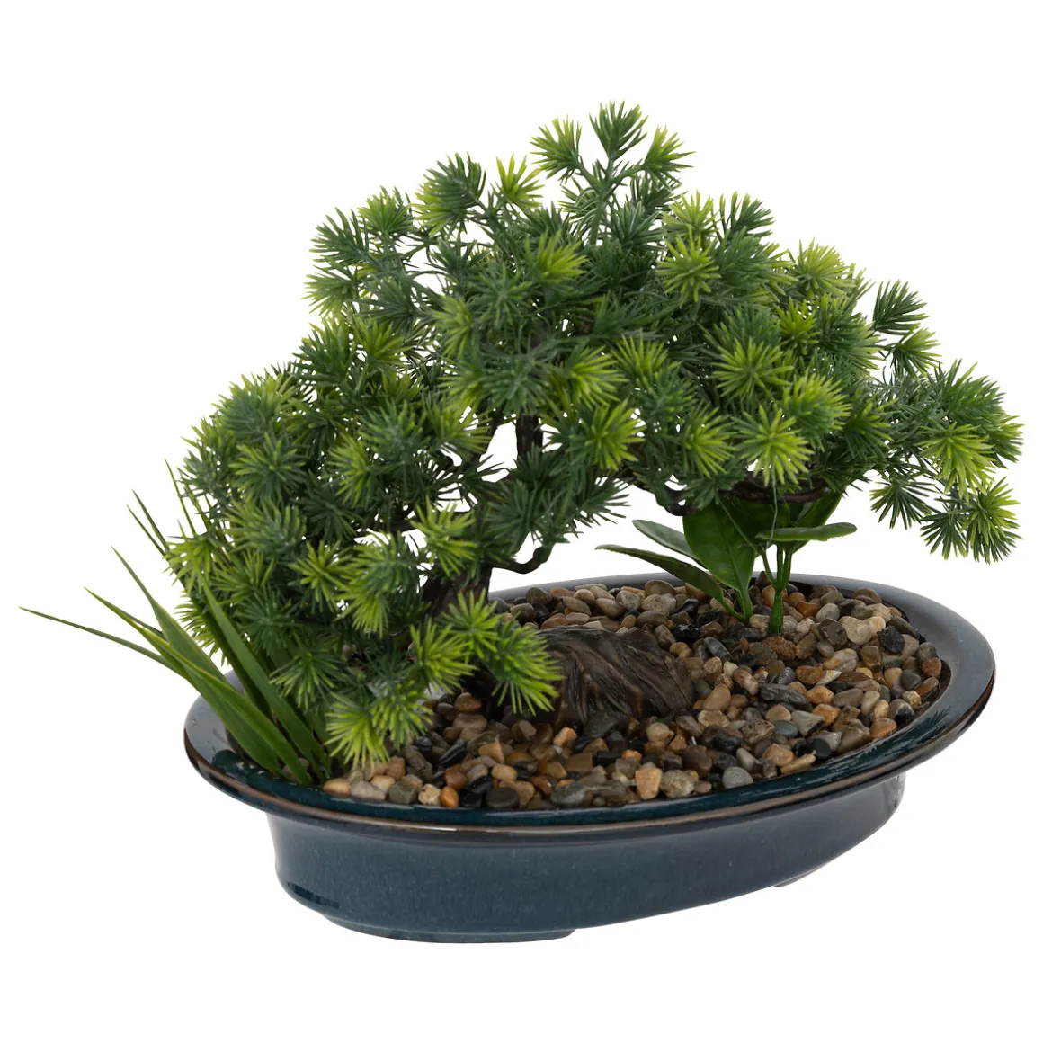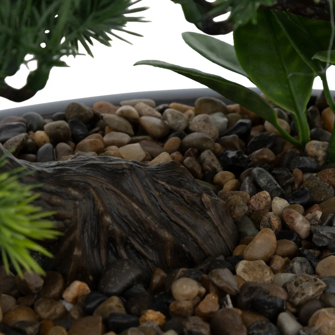 Ce bonzaï artificiel fera souffler un vent zen dans votre déco! Placé dans un pot en grès émaillé, la plante imite son modèle à la perfection et le pied est entièrement recouvert de pierres véritables. Très réaliste et facile à vivre, vous pourrez l’exposer sur un meuble ou sur une étagère pour étonner vos invités.
