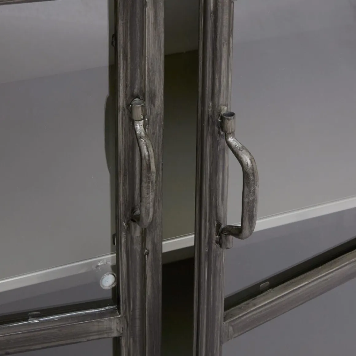 Structure en fer patiné et portes rehaussées de larges carreaux de verres : le buffet « Broc » séduit avec son style vintage. Les pieds à l’effet clouté renforcent l’esprit industriel de ce meuble rétro.