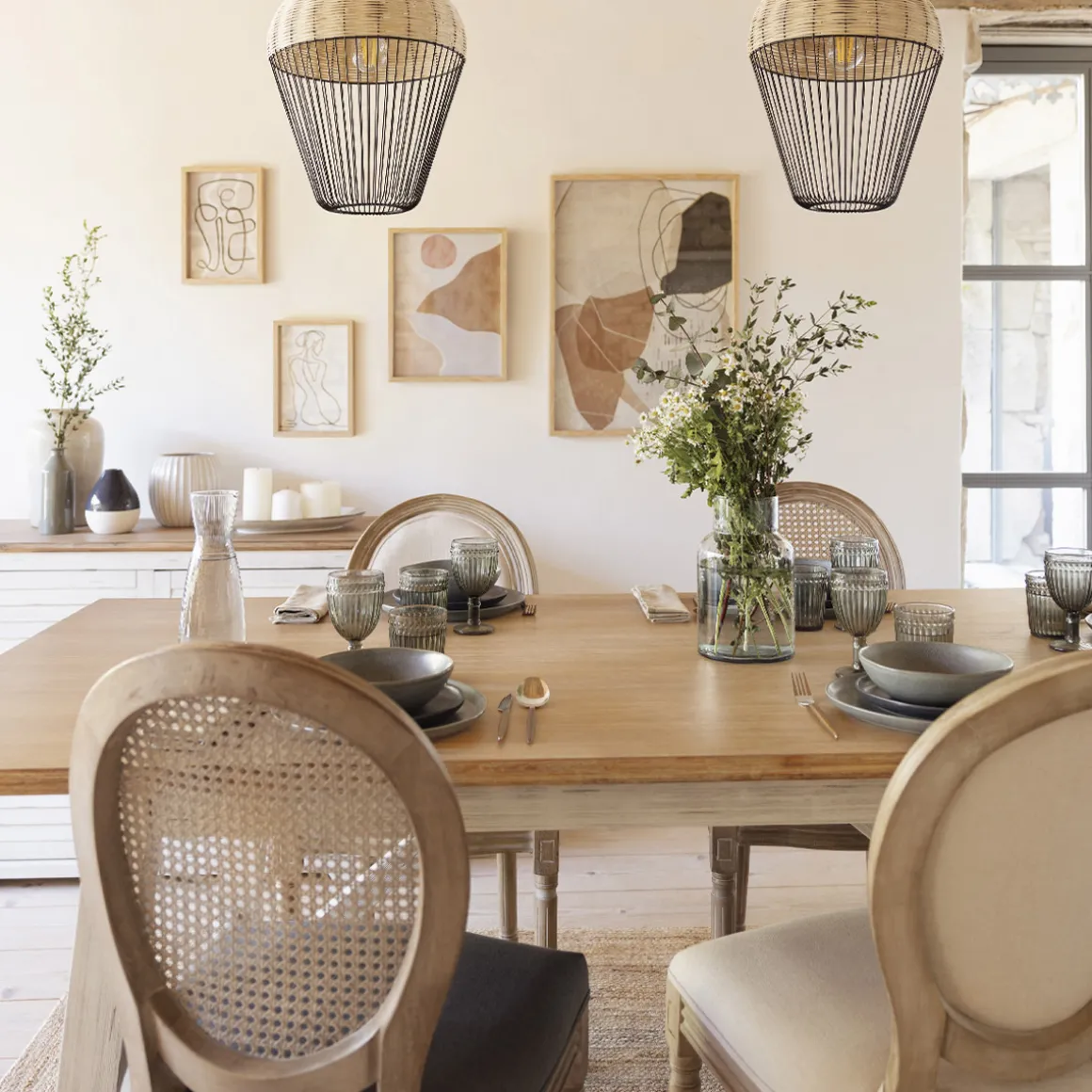 Choisissez une suspension en métal afin d’éclairer votre buffet et de le mettre en valeur.