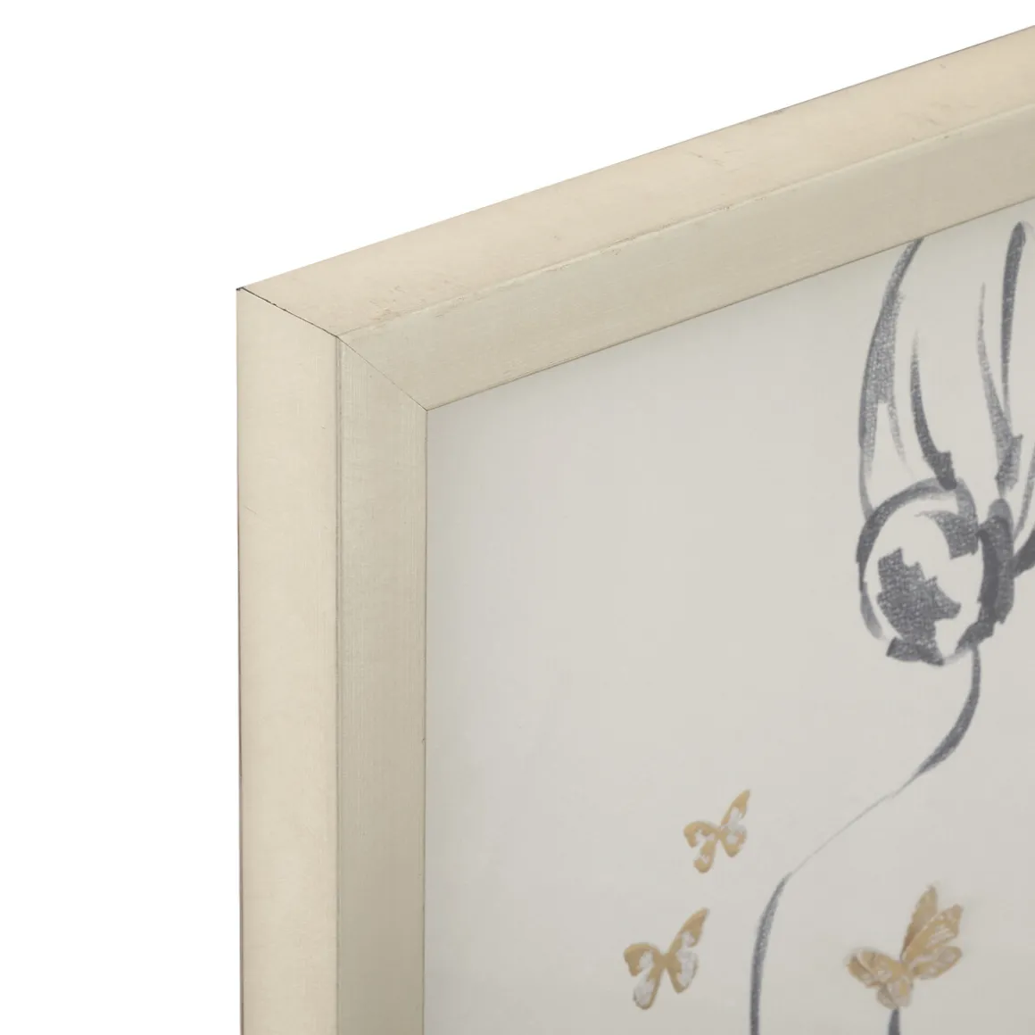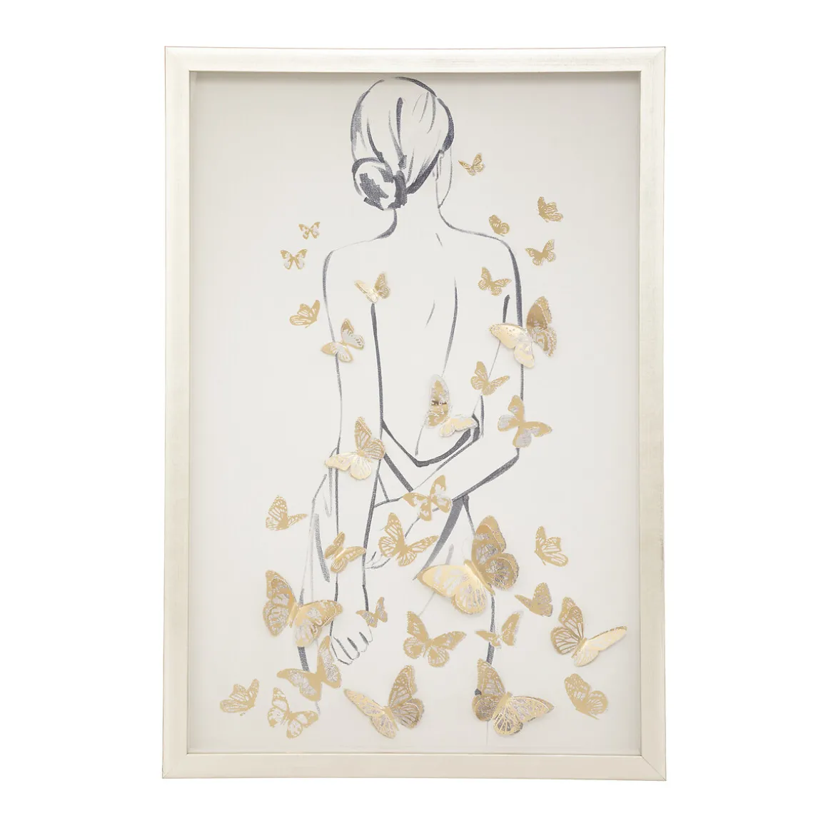 La toile « Diane » est composée d’un grand cadre rectangulaire en bois, dont la vitre abrite la silhouette d’une femme au dos nu, entièrement constellée de papillons en reliefs. De format moyen, elle s’invitera volontiers dans une chambre à coucher et participera à une ambiance chaleureuse!