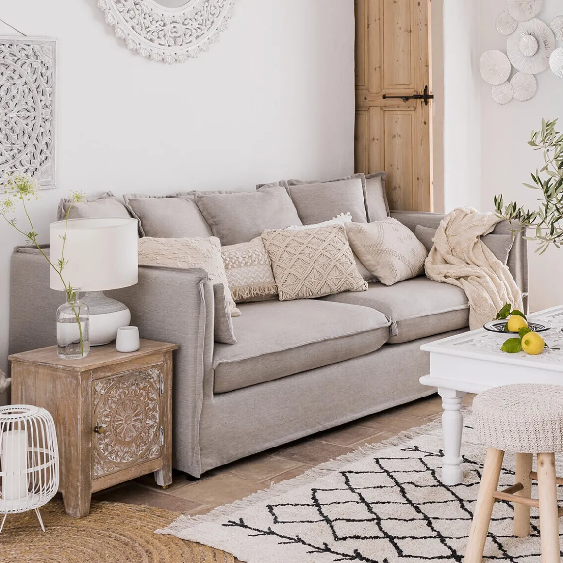 Associez votre canapé « Odilon » à une table basse au style ethnique ou un tapis graphique Atmosphera.