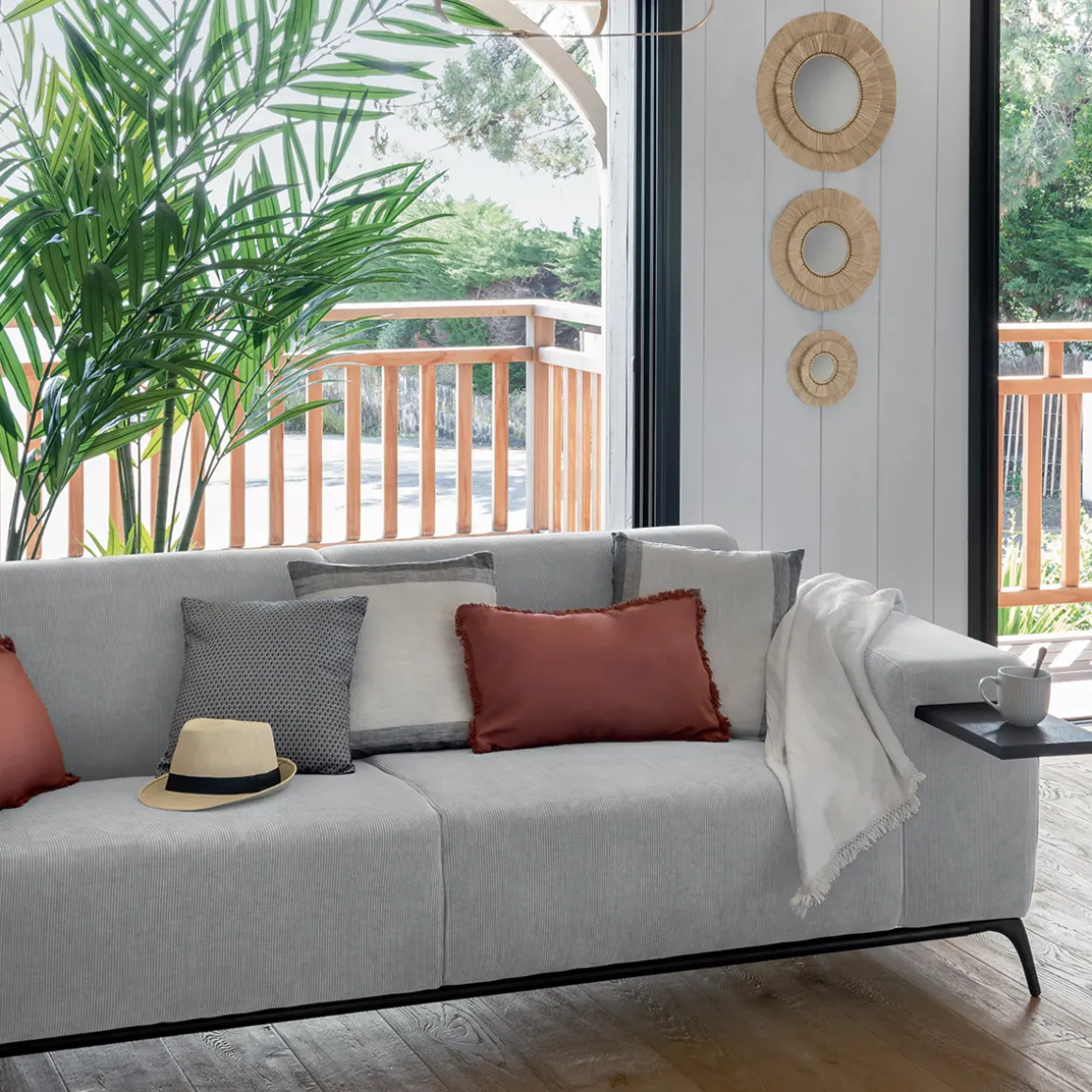 Associez ce canapé à une table basse en bois et fer Atmosphera pour un mix des matières réussi.