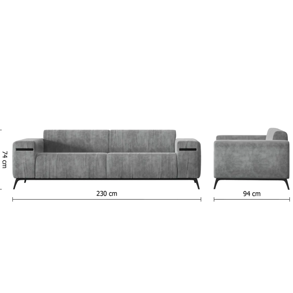 Les dimensions de ce canapé permettent d’accommoder 3 personnes qui se sentiront immédiatement à l’aise. Grâce au rembourrage de l’assise et du dossier, et à la douceur du velours côtelé, ce meuble vous garantit un accueil très agréable.