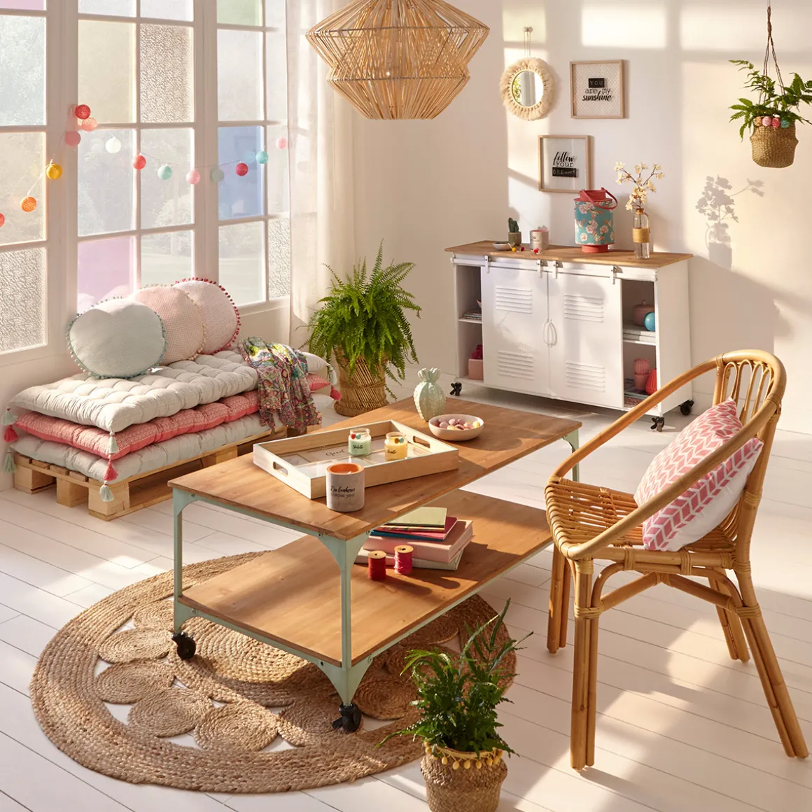 Installez ce cerisier artificiel « Dream » sur un buffet en bois et cannage afin de profiter du mariage chaleureux des matières.