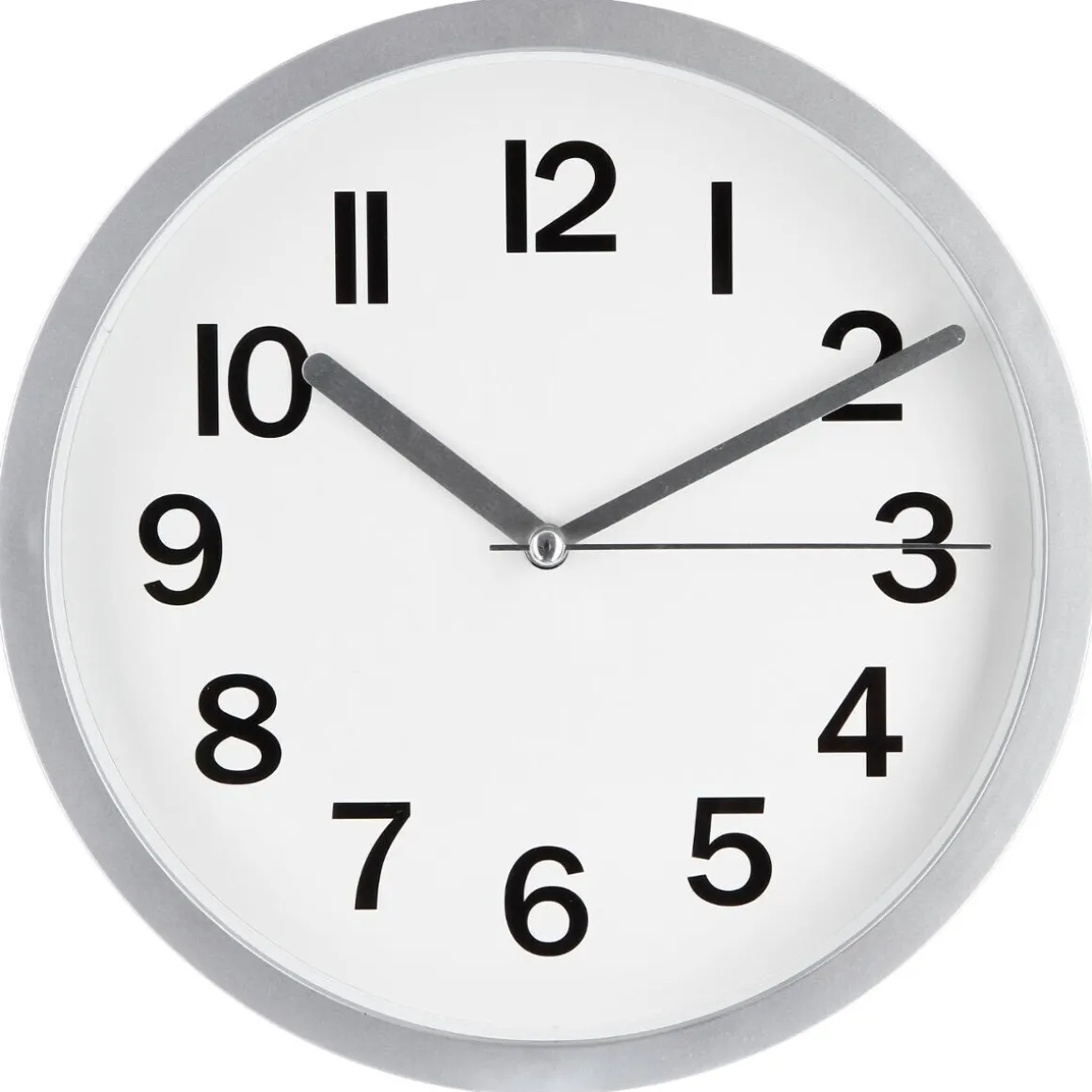 Cette horloge de 22 cm de diamètre offre un cadre cylindrique très esthétique qui imite le métal brossé. Dotée d’un mécanisme silencieux, elle est équipée d’aiguilles en aluminium et d’un fond vitré. Cette horloge déposera une touche dans l’air du temps.