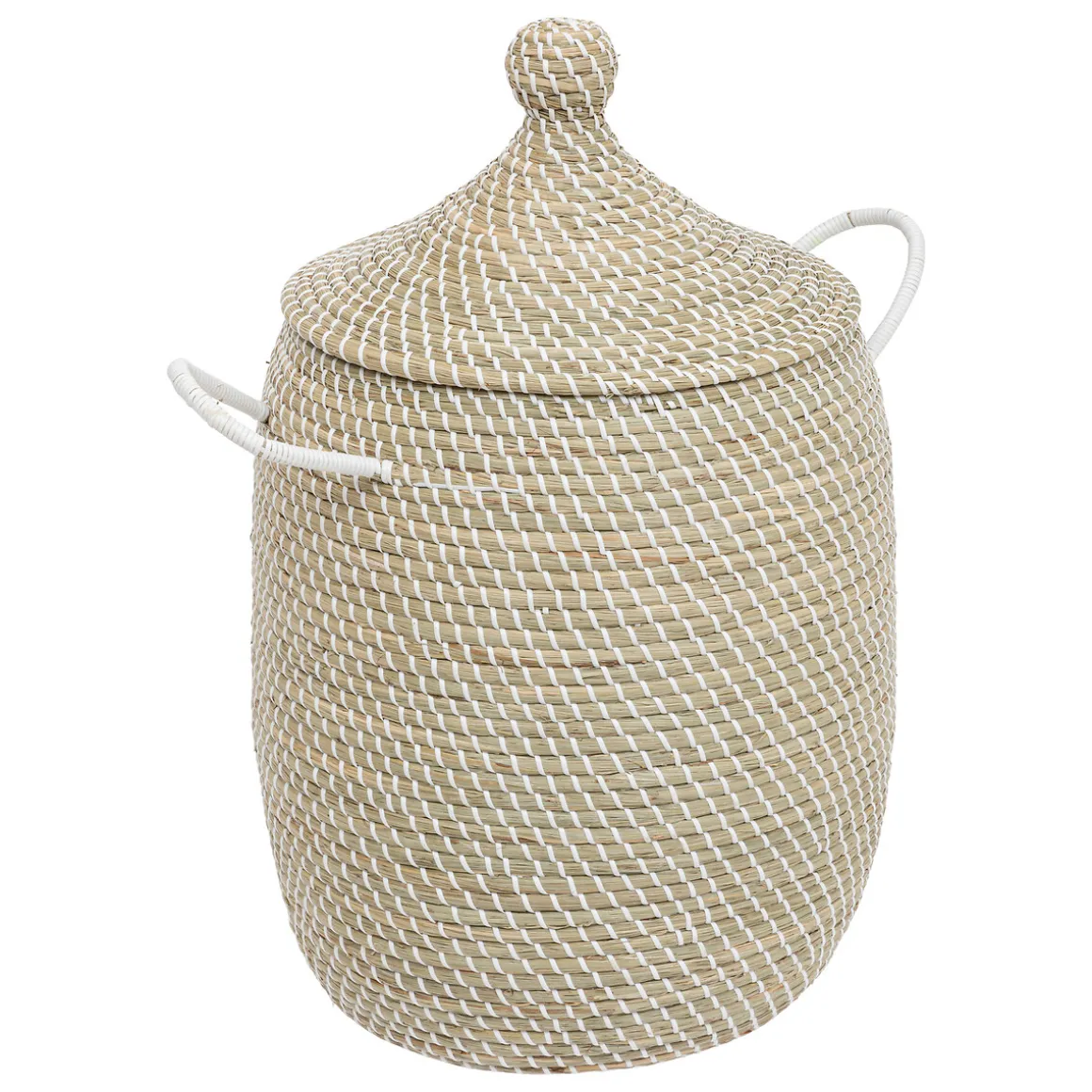 Très naturels, les 2 paniers du lot « Soleya » sont réalisés en paille tressée et se déclinent dans deux tailles différentes. Dotés de couvercles et d’anses, ils se déplaceront facilement d’une pièce à l’autre.