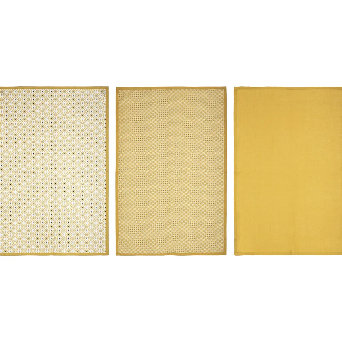Ce lot de 3 torchons imprimés est composé de 3 torchons en coton de format standard. Imprimés de motifs ou uni, ils sont faciles à vivre et se lavent en machine. Ils seront parfaits pour ajouter une touche conviviale dans votre univers et se marieront avec des matières naturelles.
