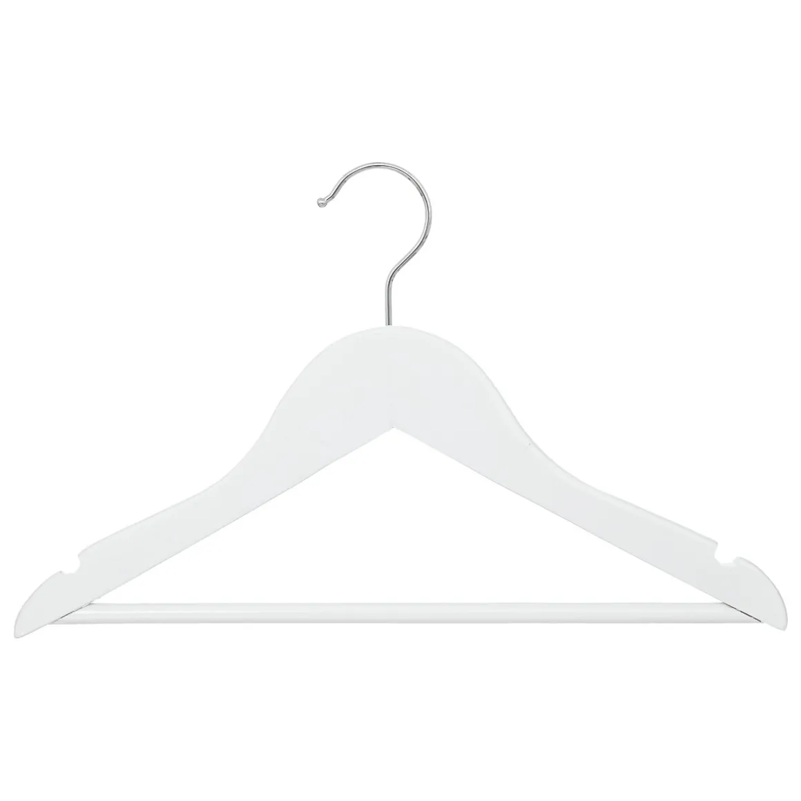 Ce lot de cintres enfant est composé de 4 cintres en bois peint, équipés de crochets métalliques. Grâce à leur barre transversale, vous pourrez y suspendre des pantalons et leurs arrêtoirs vous permettront d’accrocher des tee-shirts à bretelles. Veste et manteaux resteront bien en place!