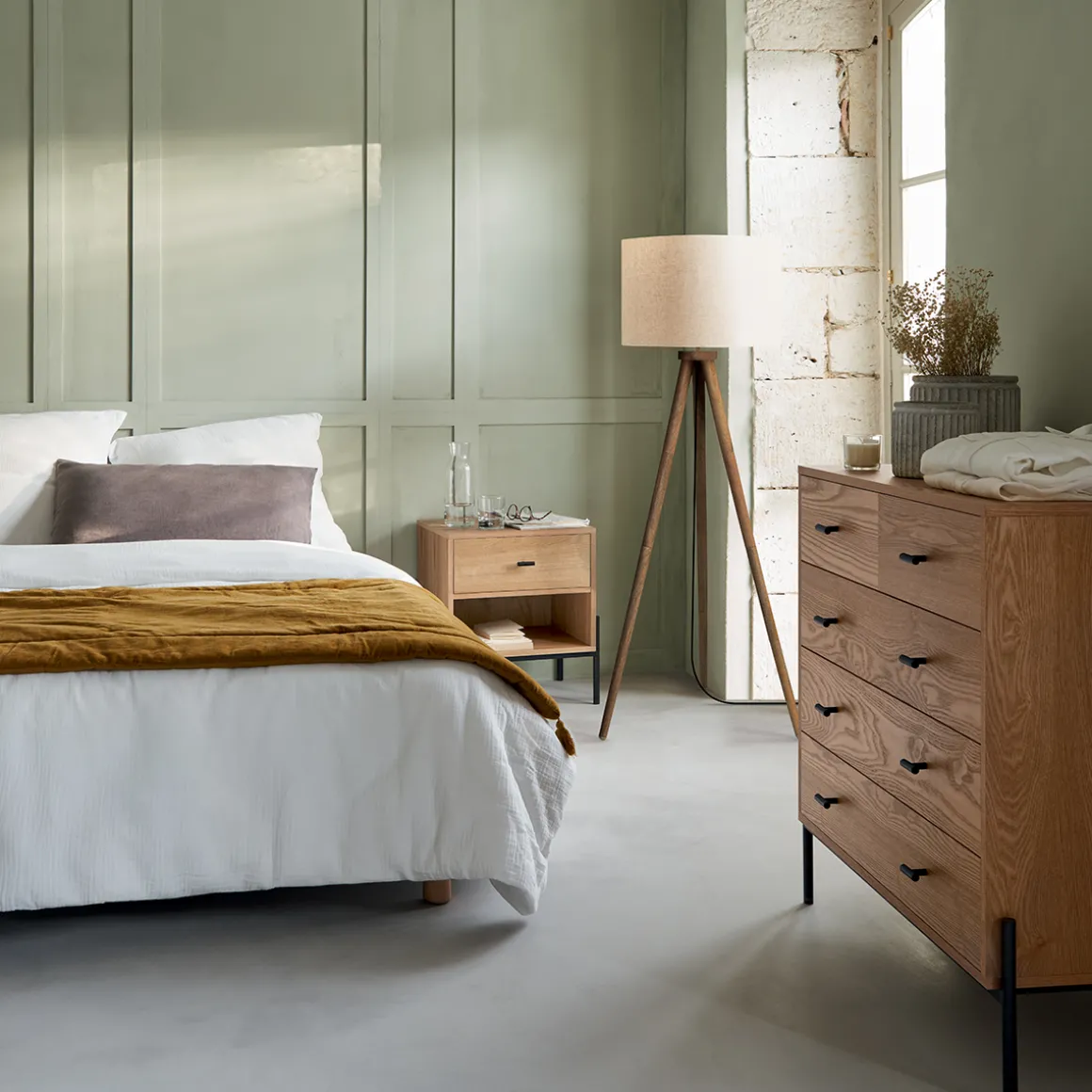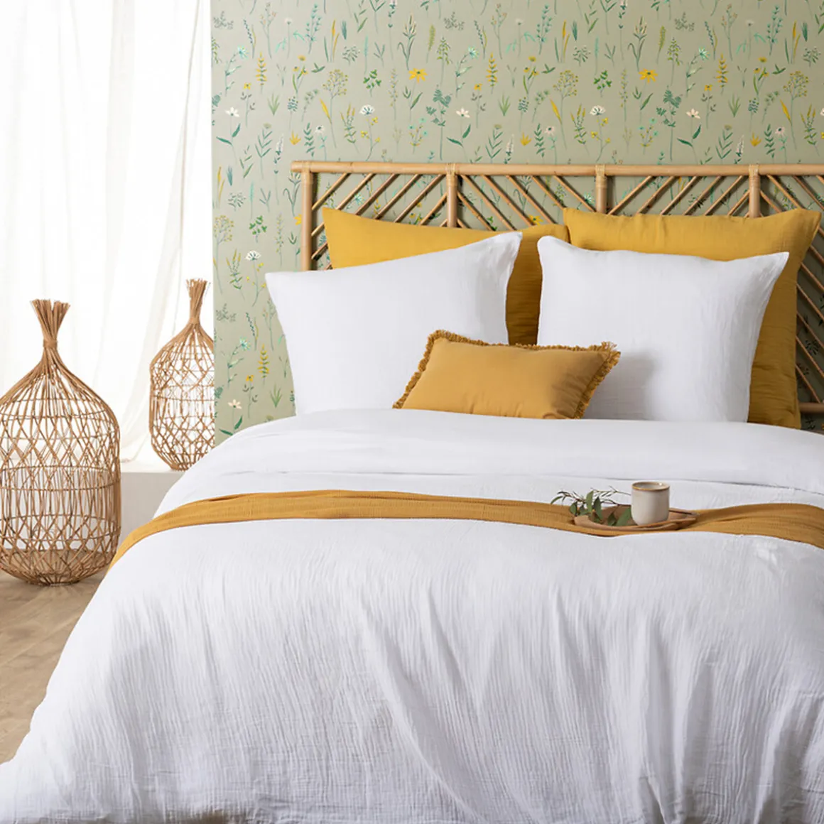 Unie, cette parure de lit en gaze de coton est à la fois tendance et élégante. Composée de deux taies d’oreiller et d’une housse de couette, elle est facile à vivre et lavable en machine.
