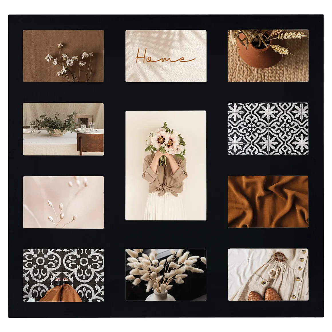 Ce cadre photo pêle-mêle en bois peut contenir onze photos. L’emplacement vertical au centre accueillera une grande photo entourée de dix clichés à l’horizontale. Moments en famille, voyages inoubliables, soirées… tous vos souvenirs seront sublimés et toujours à portée de vue. La sobriété du Pêle-mêle « Gael », 11 photos, bois décorera à merveille le mur d’un salon ou d’une chambre.