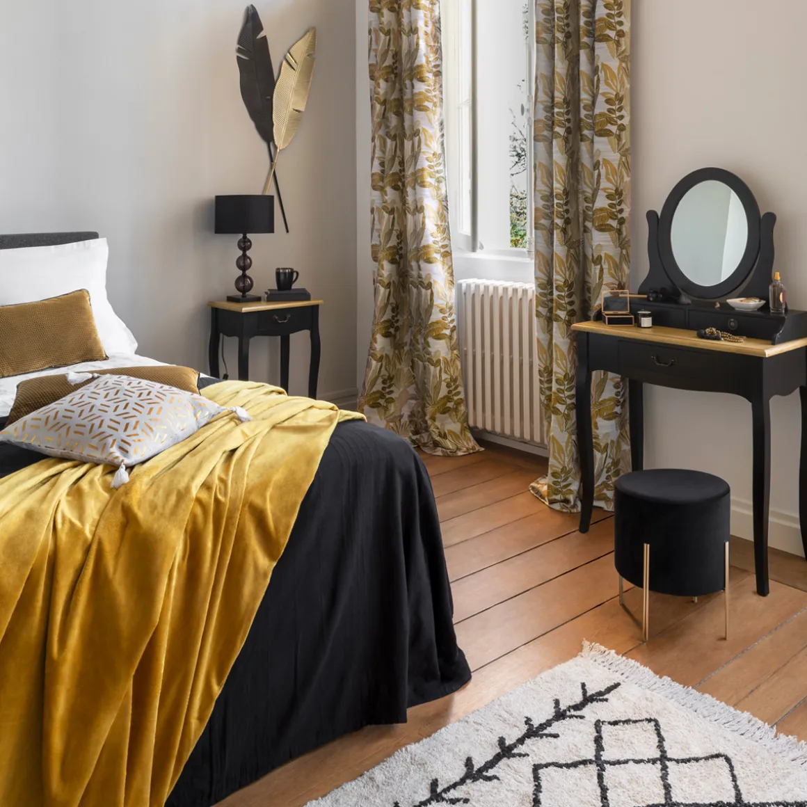 Associez ce plaid uni en flanelle à une table de chevet et un luminaire en bois Atmosphera pour un style authentique.