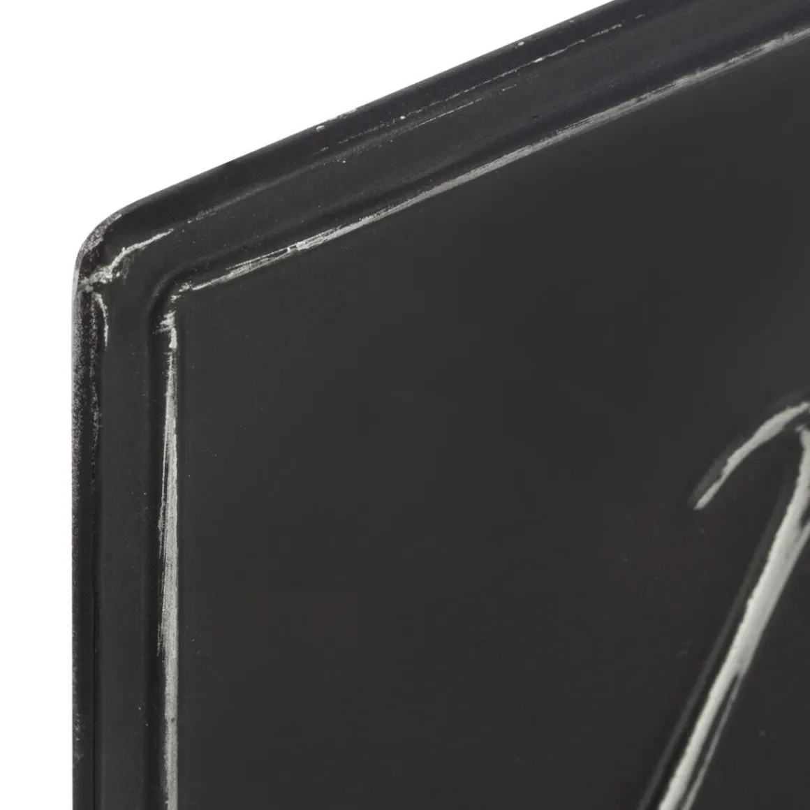 L’impression en relief de cette déco murale en métal renforce l’idée qui est exprimée en la mettant en avant. Le contraste du blanc sur le noir fait également bien ressortir le message.