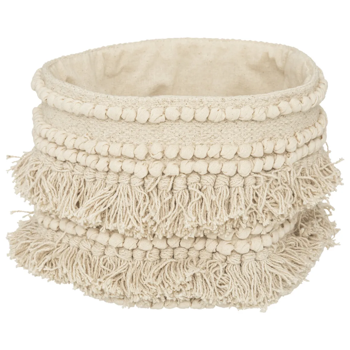 Le set « Seav » est composé de 2 paniers en coton recyclé de tailles complémentaires qui pourront servir de rangements d’appoint ou même de cache-pots. Frangés et souples, ils se marieront parfaitement avec des matières comme le bois ou la jute afin de former un ensemble plein de caractère dans votre intérieur.