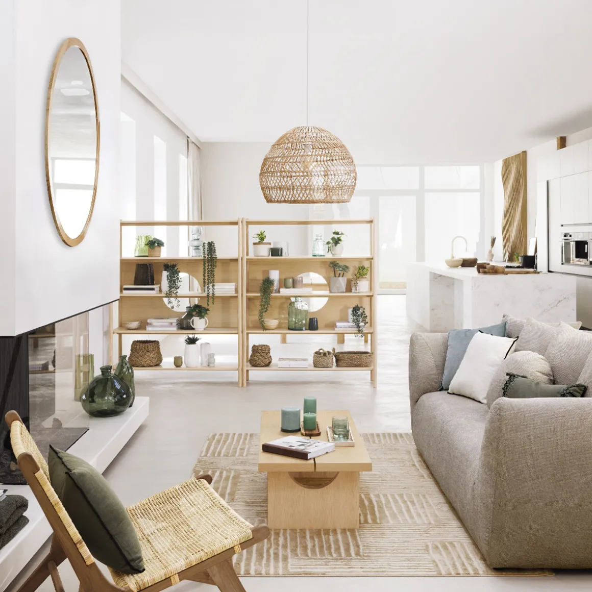 Un vase avec des fleurs séchées complètera à merveille un salon dans les tons naturels.