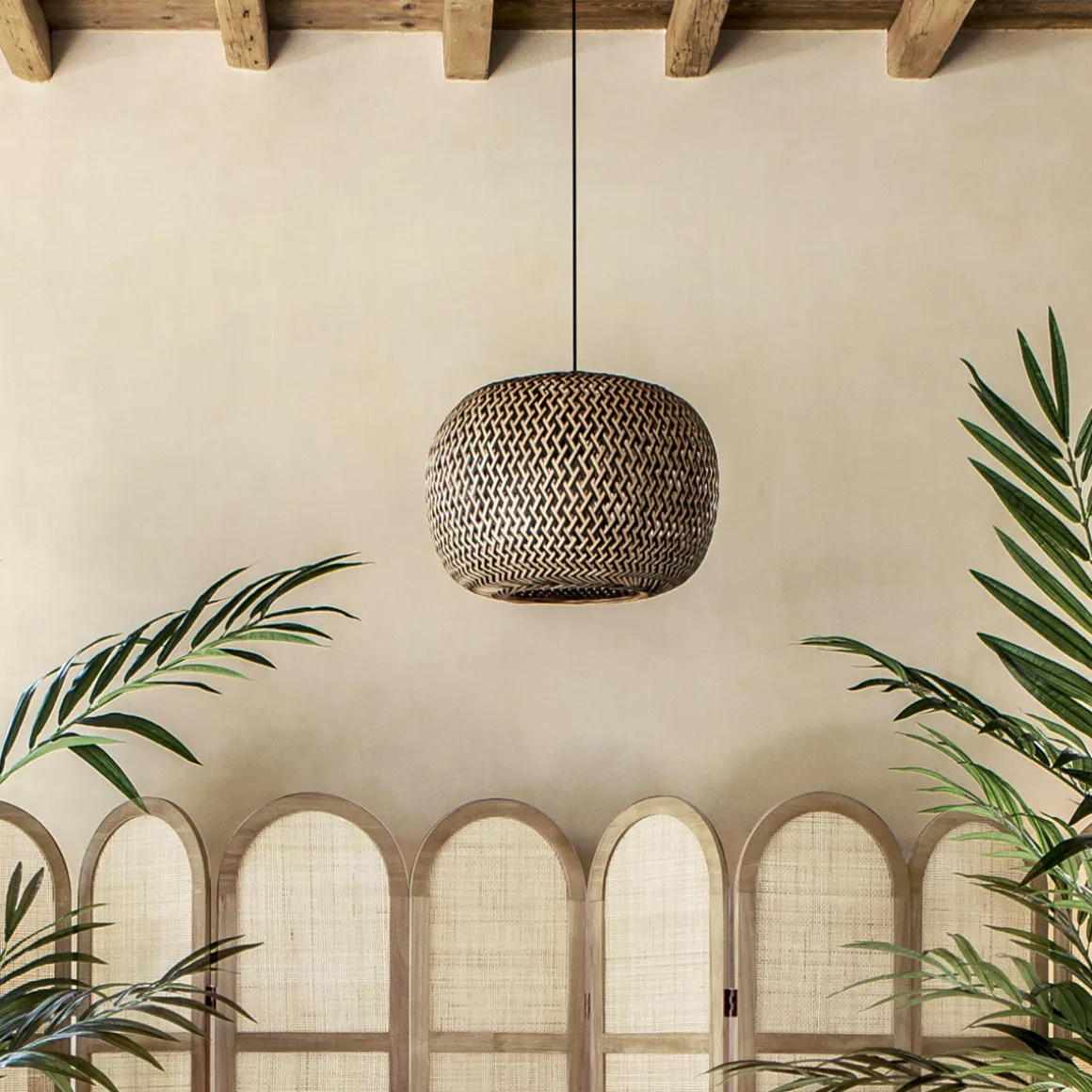 Avec un tressage en bambou régulier créant un quadrillage en losange, cette suspension apporte du caractère à votre pièce. La suspension « Sinai » s’inscrit clairement dans un style ethnique chic au top de la tendance.
