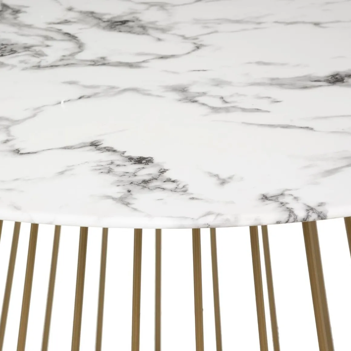 Composée d’une structure en fer légèrement conique qui soutient un plateau rond en verre trempé effet marbre, cette table apportera une touche chic et élégante à votre salle à manger.