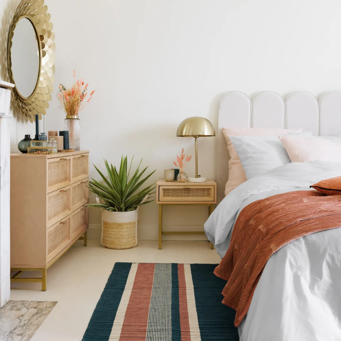 Cette table de chevet déposera une note féminine et glamour dans votre chambre à coucher. Vous pourrez choisir une lampe de chevet en marbre ou en rotin pour ajouter un éclairage chaleureux et les coordonner à une tête de lit.
