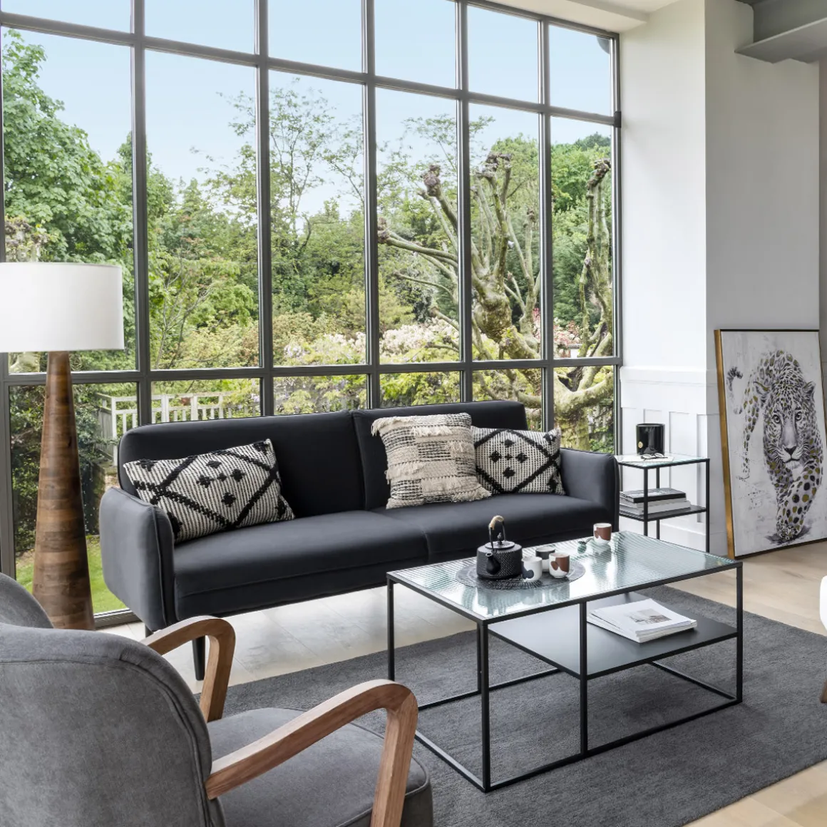 Pour un salon d’inspiration Art déco, associez ce tapis à un canapé en velours Atmosphera.
