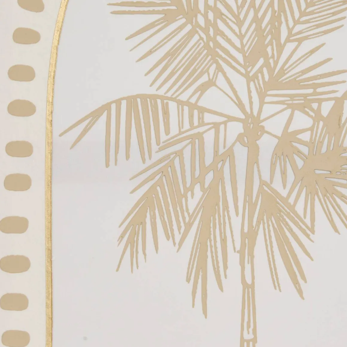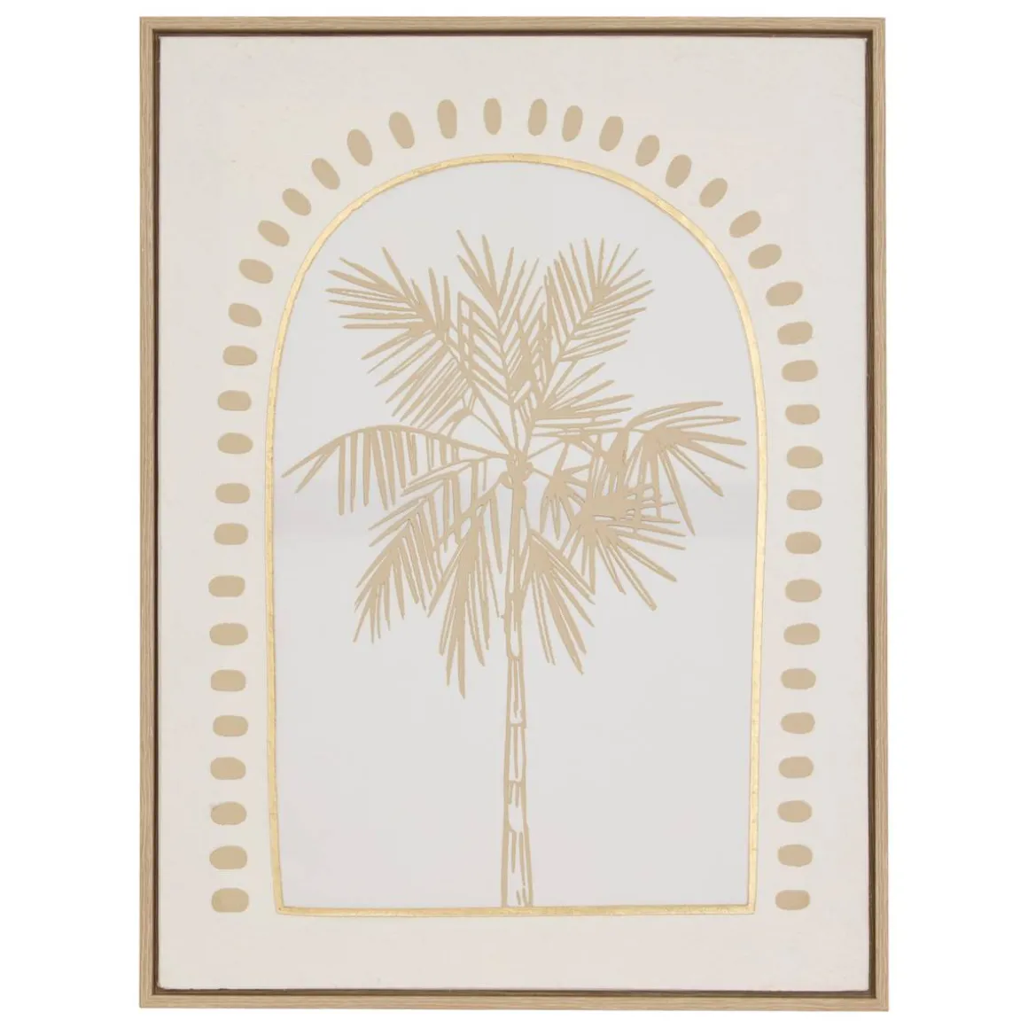 Cette toile encadrée représente un arbre tropical avec des motifs dorés en relief. Dans un intérieur aux accents naturels, la toile en relief Meryl sera sublimée avec une suspension en rotin Atmosphera.