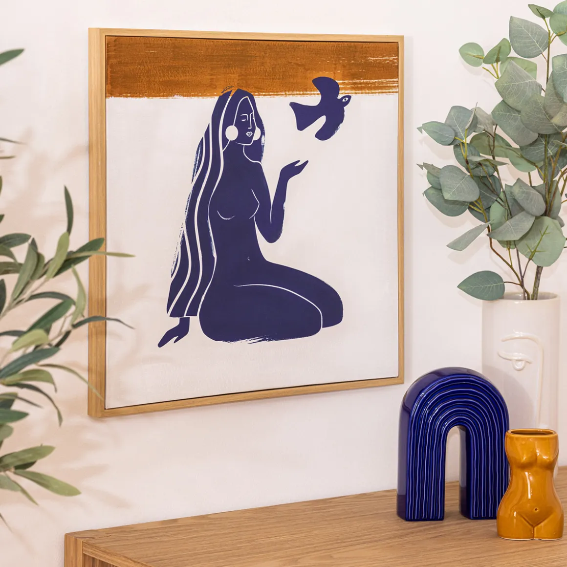 Fixez votre toile imprimée « Melody » au-dessus d’une commode en bois Atmospheraaux lignes scandinaves et profitez d’un univers cosy!