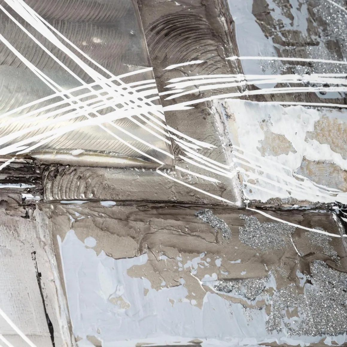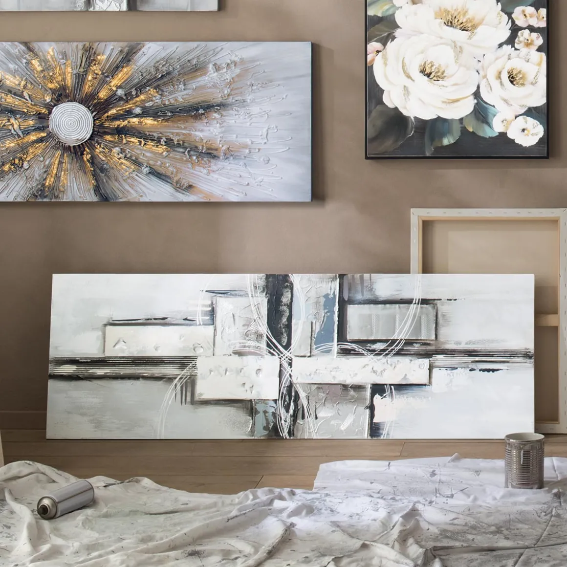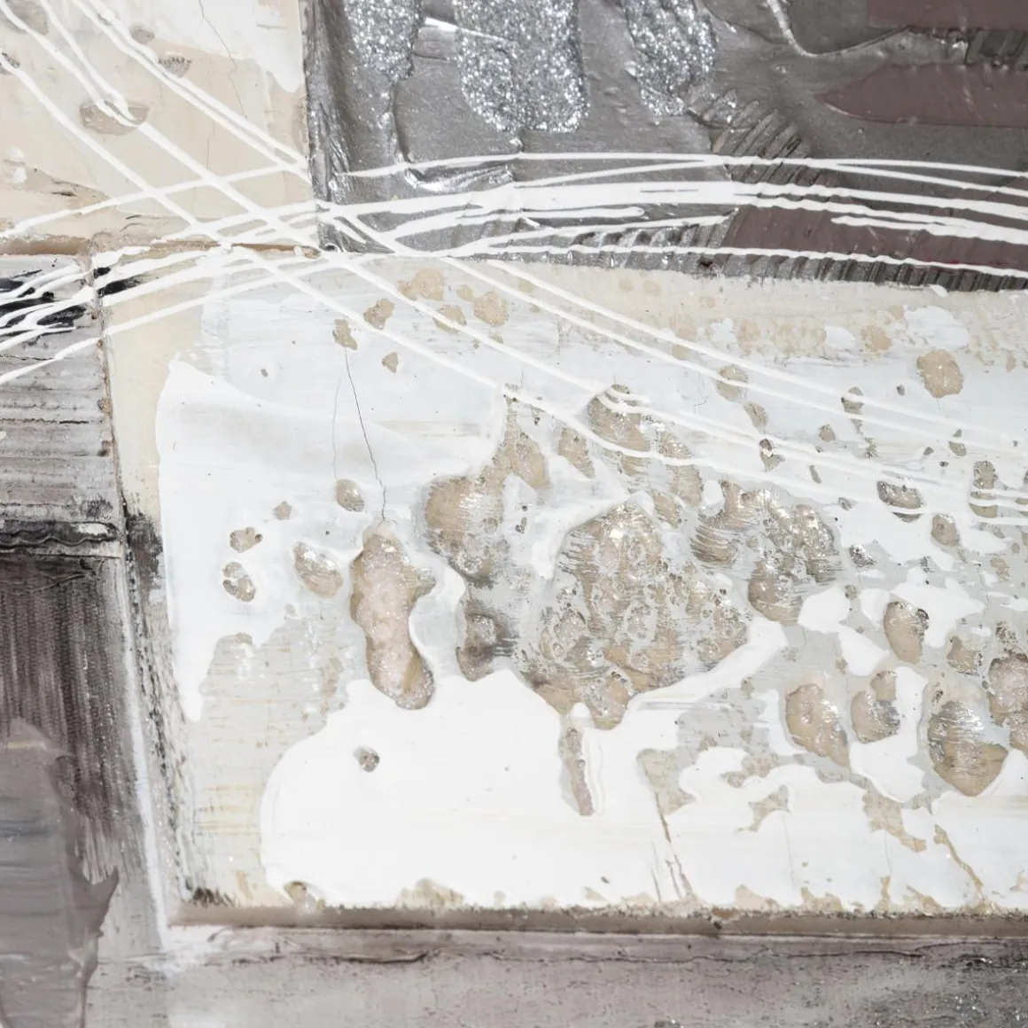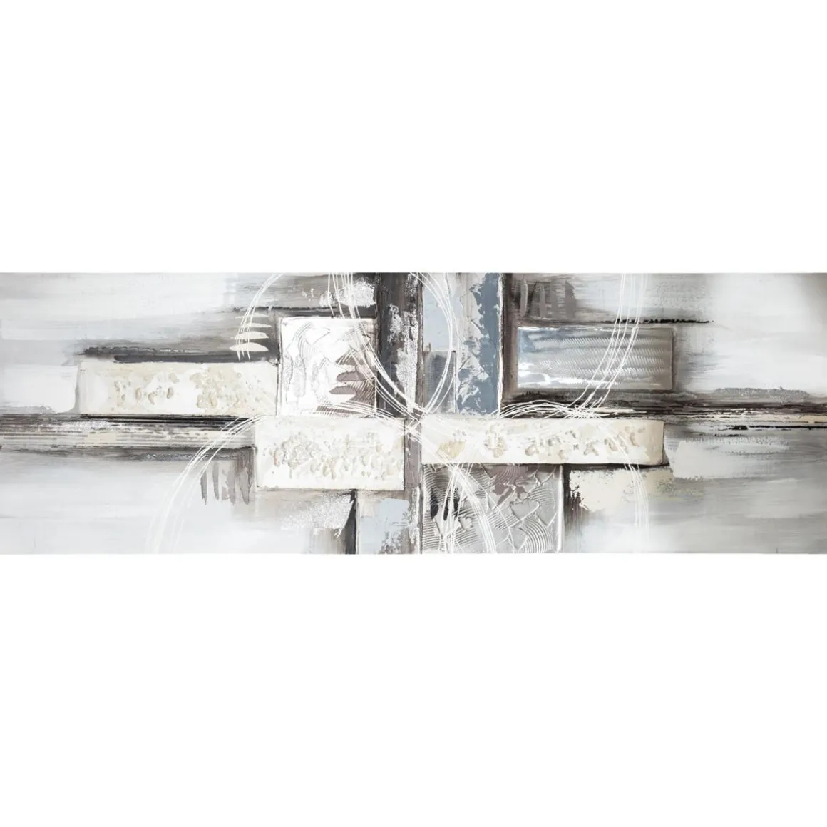 Couleurs claires naturelles, figures géométriques, traces et coups de pinceau, la toile sur châssis grand format « Kylia » se décline en deux versions permettant de coordonner la décoration du salon et de la salle à manger.