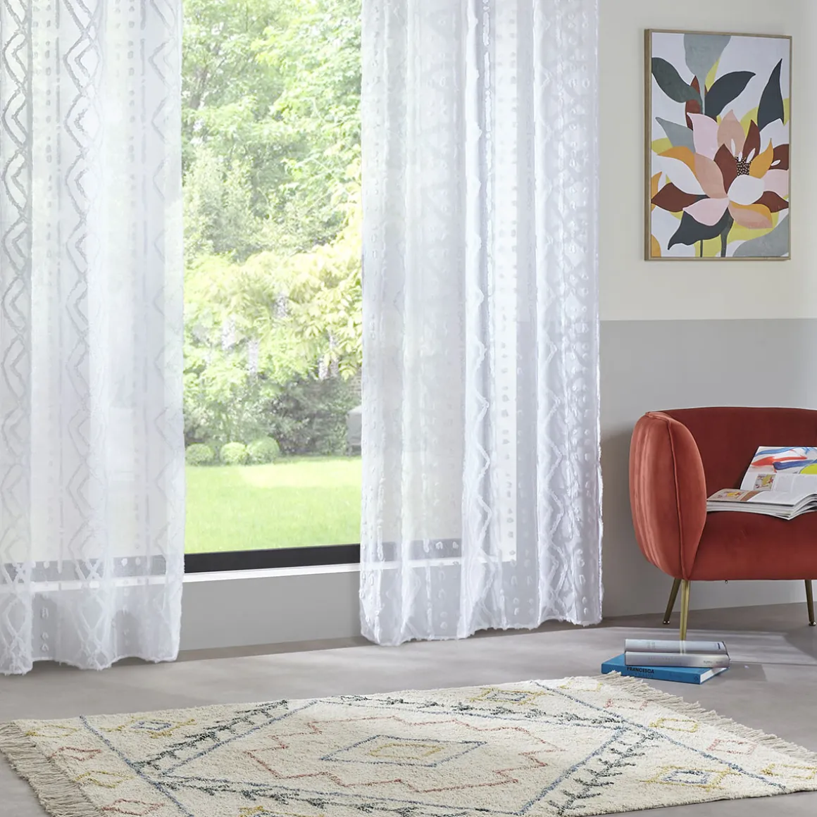 Associez le voilage « Sama » à un rideau occultant Atmosphera de la même couleur pour rester dans le ton.