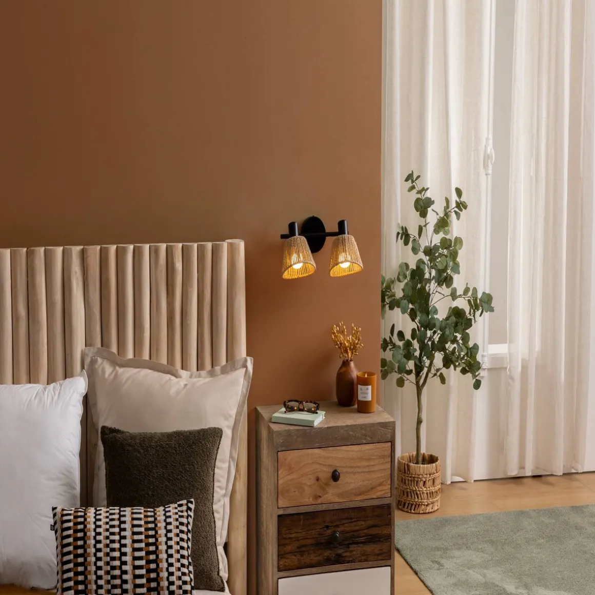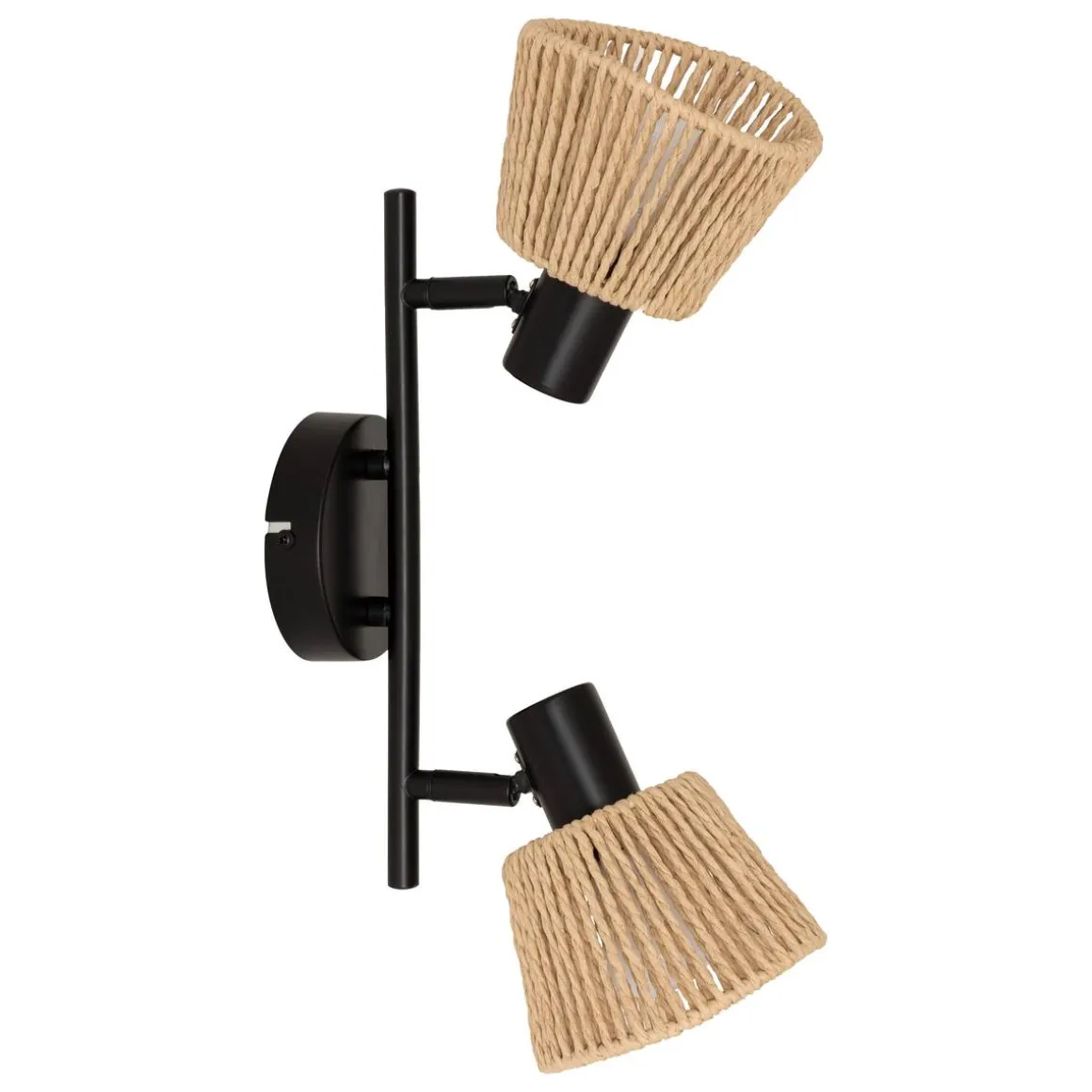 L’applique corde Myha 2 spots Atmosphera est composée d’une base cylindrique en acier teinté sur laquelle est fixée une barre transversale, elle-même équipée de 2 spots orientables. Les abat-jours en papier tressé certifié FSC®* créeront une lumière douce et chaleureuse dans la pièce de votre choix, que vous fixiez ce luminaire au mur ou au plafond. Installez votre applique dans une entrée et orientez les spots au gré de vos envies, pour mettre en valeur une console et une toile murale. Ce luminaire conviendra aux petits espaces et vous pourrez l’associer à d’autres éléments de cette gamme Atmosphera.