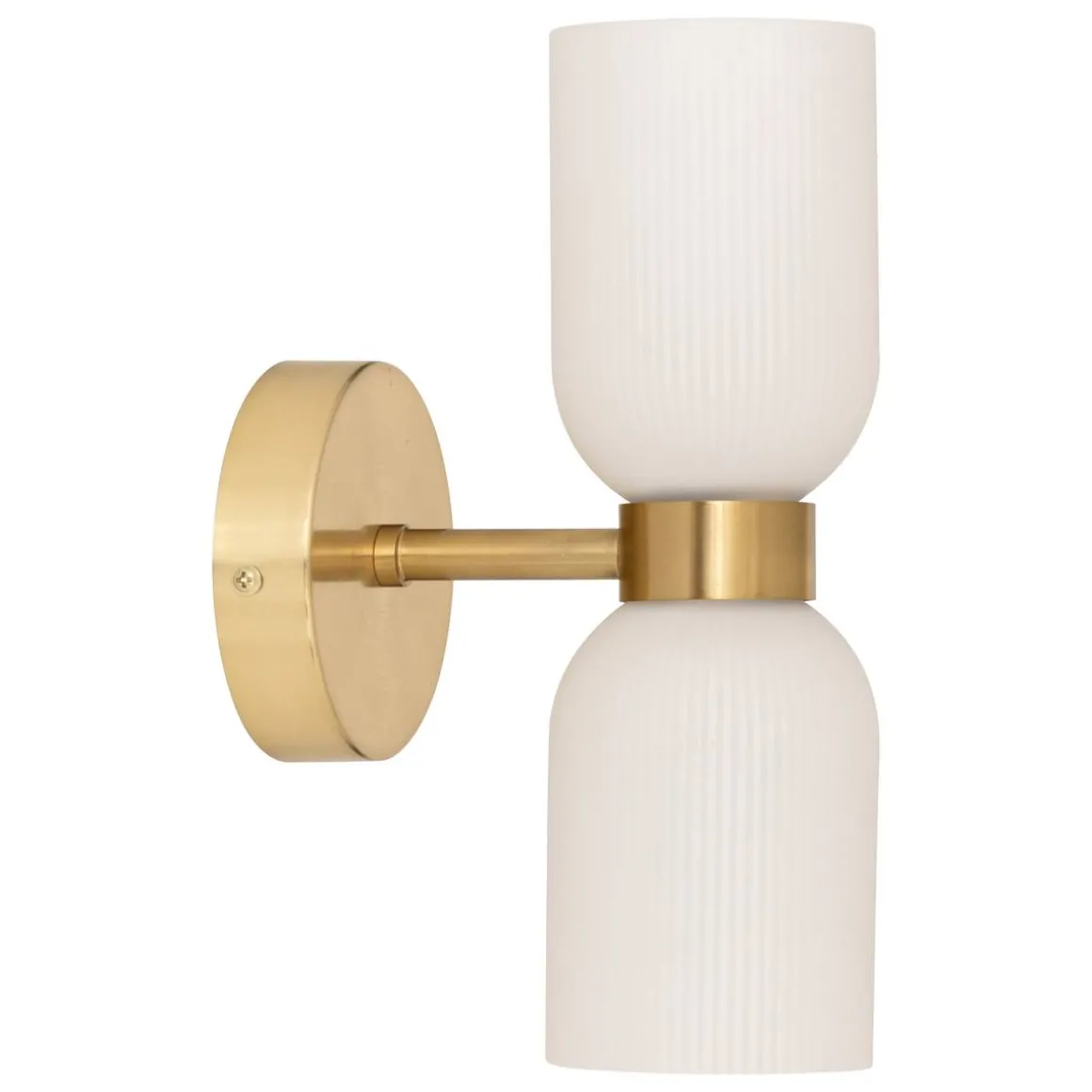 L’applique métal Rio 2 spots Atmosphera est constituée d’une base et d’un bras de suspension en acier teinté à effet laiton, auxquels sont fixés deux spots fixes à abat-jours en verre strié au fini mat. Avec leurs lignes douces, ces spots vous procureront une lumière chaleureuse en fonction de l’intensité des ampoules choisies. Installez votre applique dans une entrée au-dessus d’une console pour profiter de lumière de part et d’autre de votre pièce.