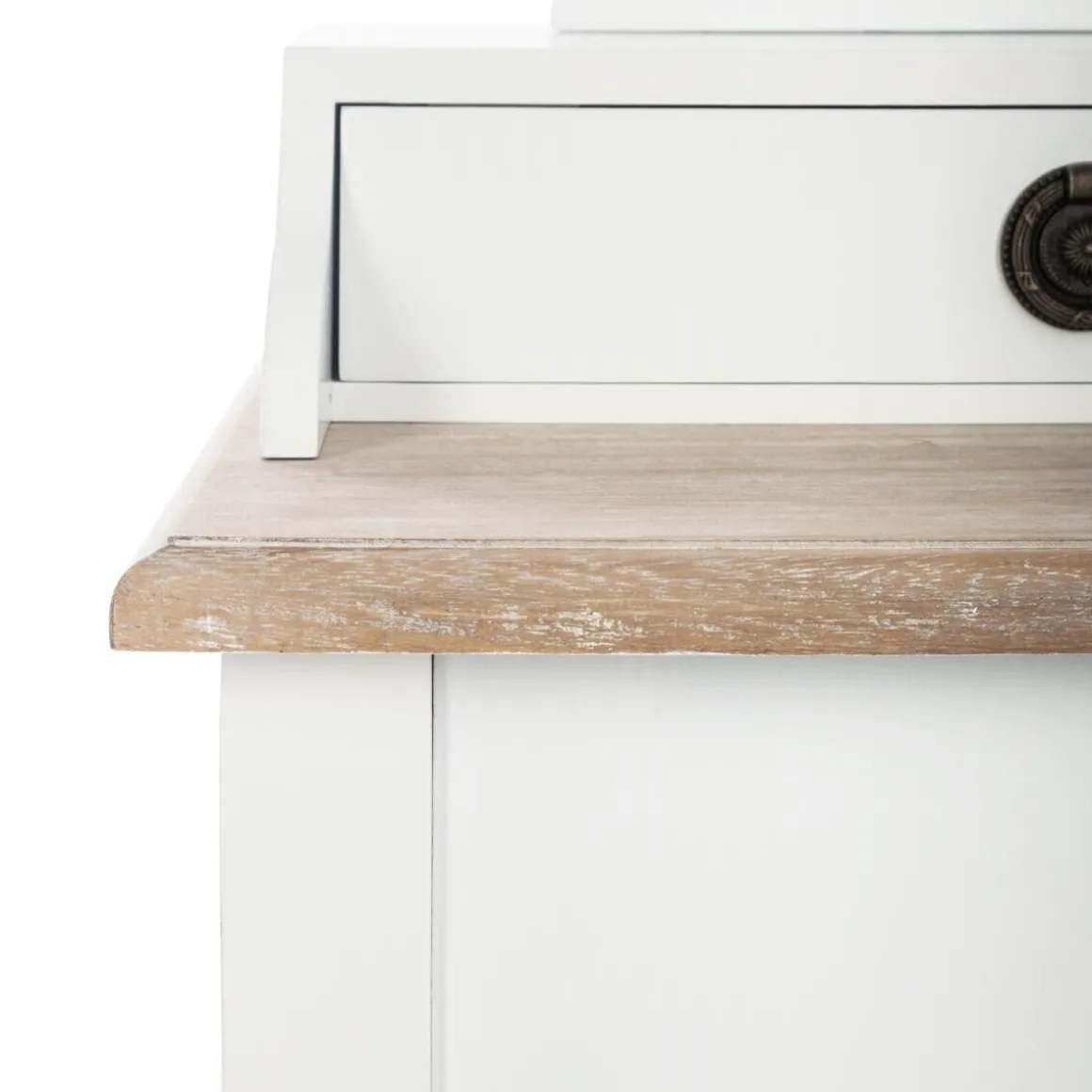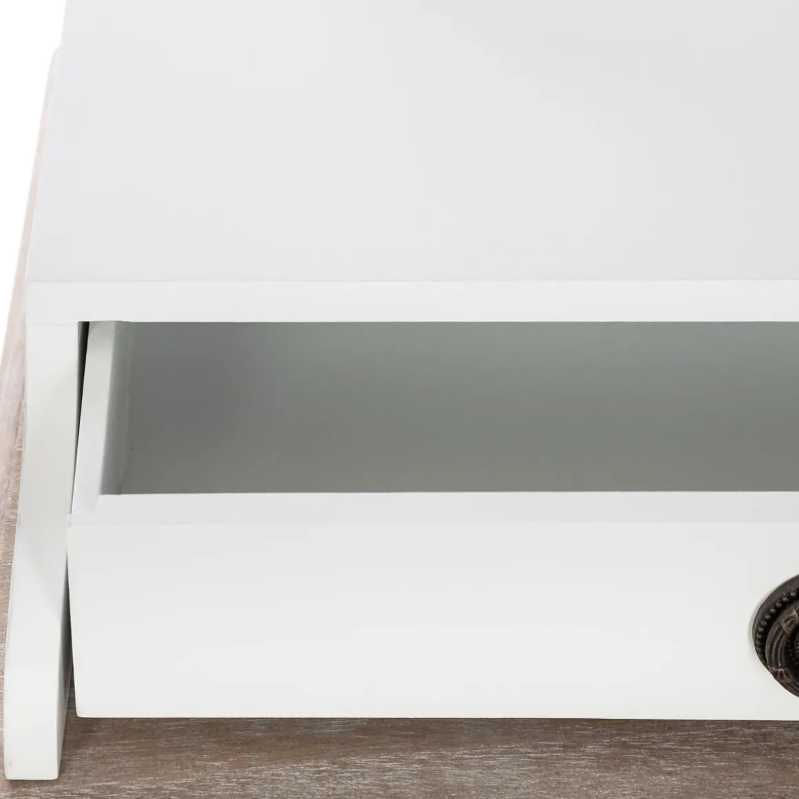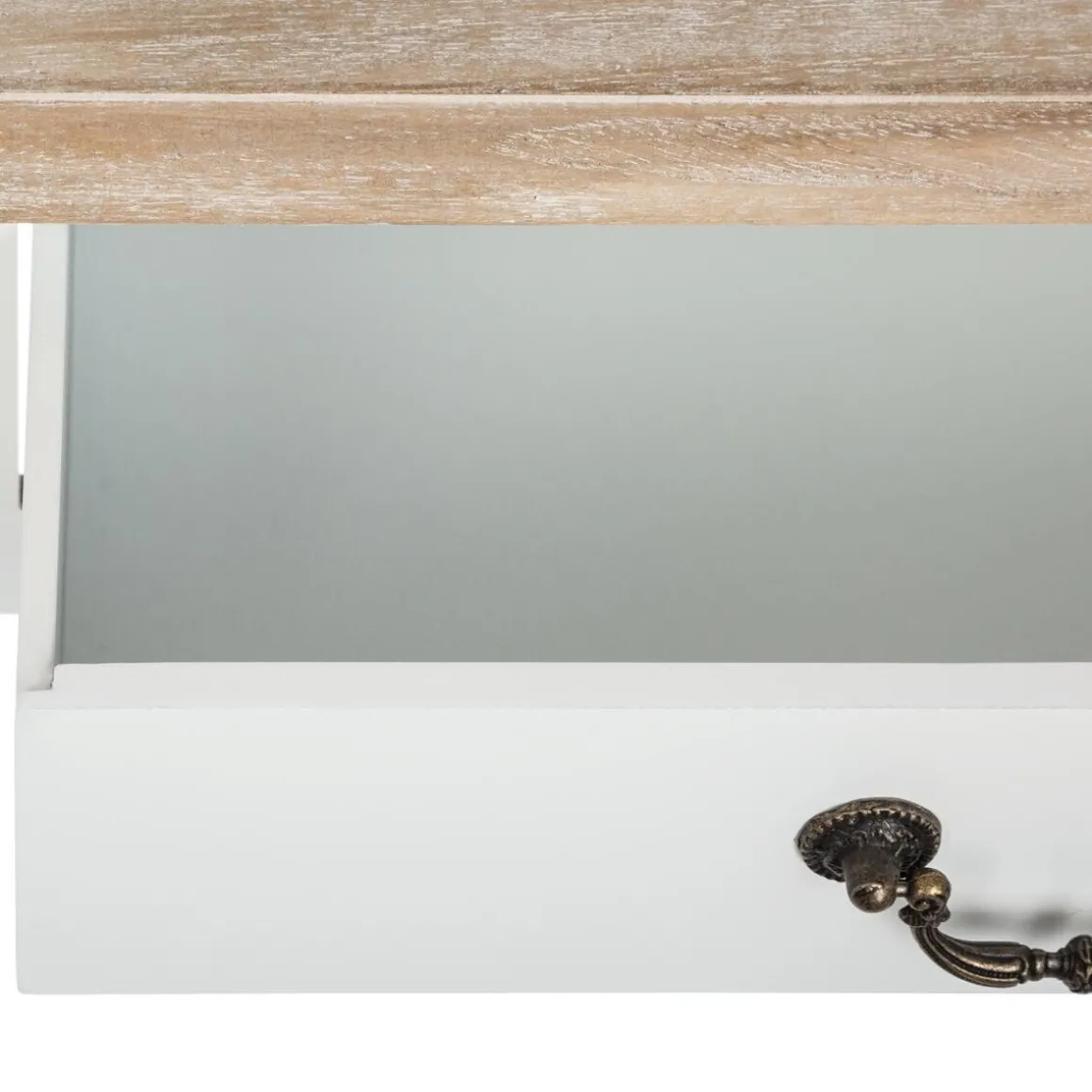Construite en panneaux de fibres résistants avec des pieds en bois, la coiffeuse « Chrysa » vous offrira finesse et solidité. Ses trois tiroirs faciliteront le rangement de votre maquillage. Les deux niveaux du bureau proposent assez d’espace pour une utilisation confortable de vos différents produits cosmétiques au quotidien.