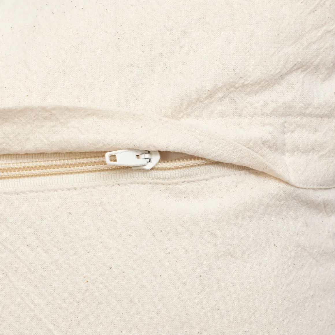 La housse en 100% coton est amovible grâce à une fermeture éclair afin de faciliter le nettoyage.