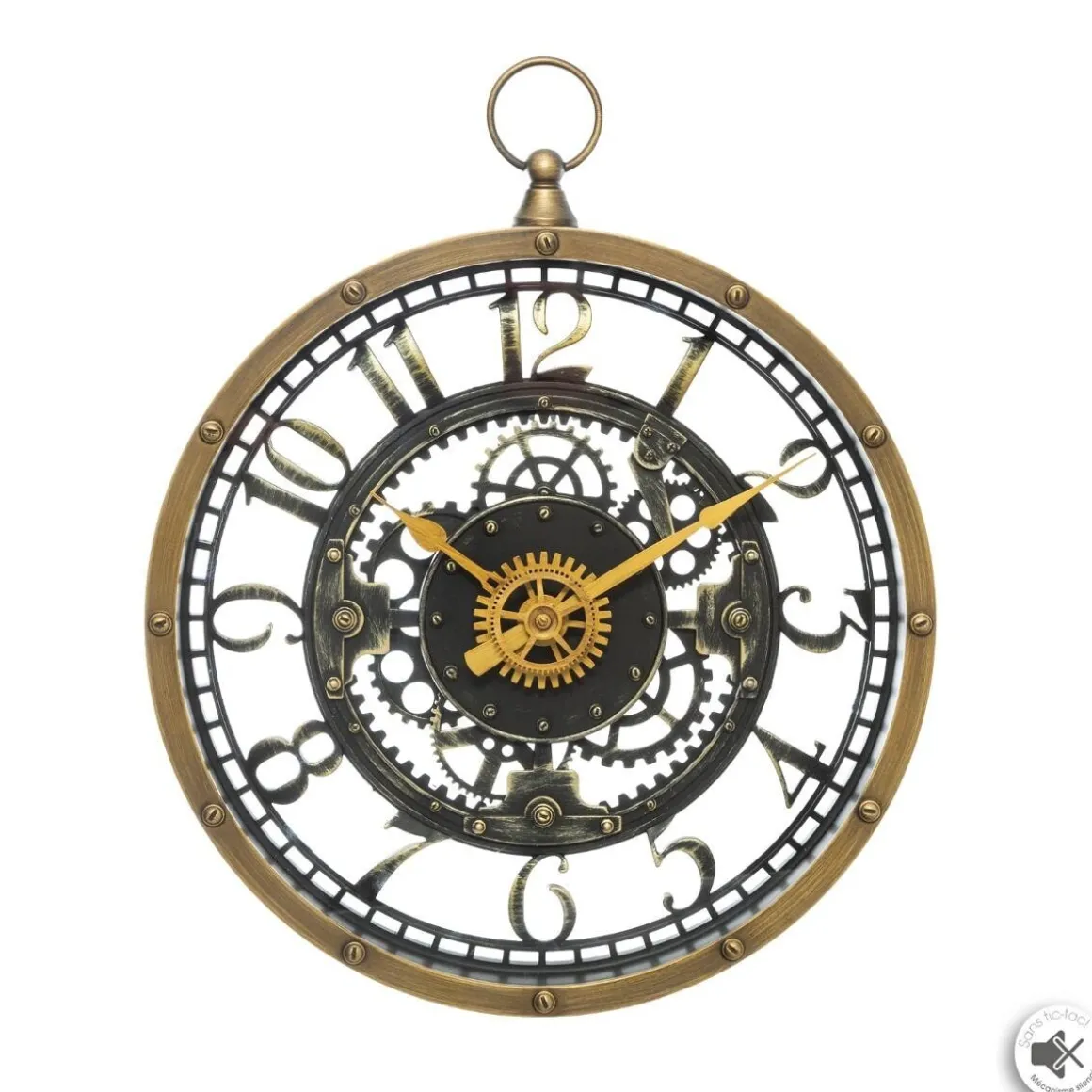 Vous aimerez les rouages placés en façade de cette horloge Atmosphera. Le cadre à effet métal vieilli et les rivets ajoutent un côté industriel et rétro à cette horloge.