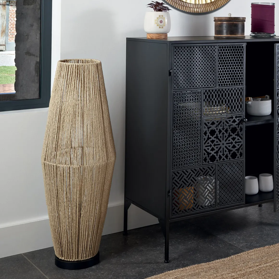 Laissez-vous séduire par le design de ce luminaire : sa structure en métal et en papier tressé apporte du relief et une touche exotique à votre décoration. Ce lampadaire éclaire de façon optimale un coin salon ou même une chambre.