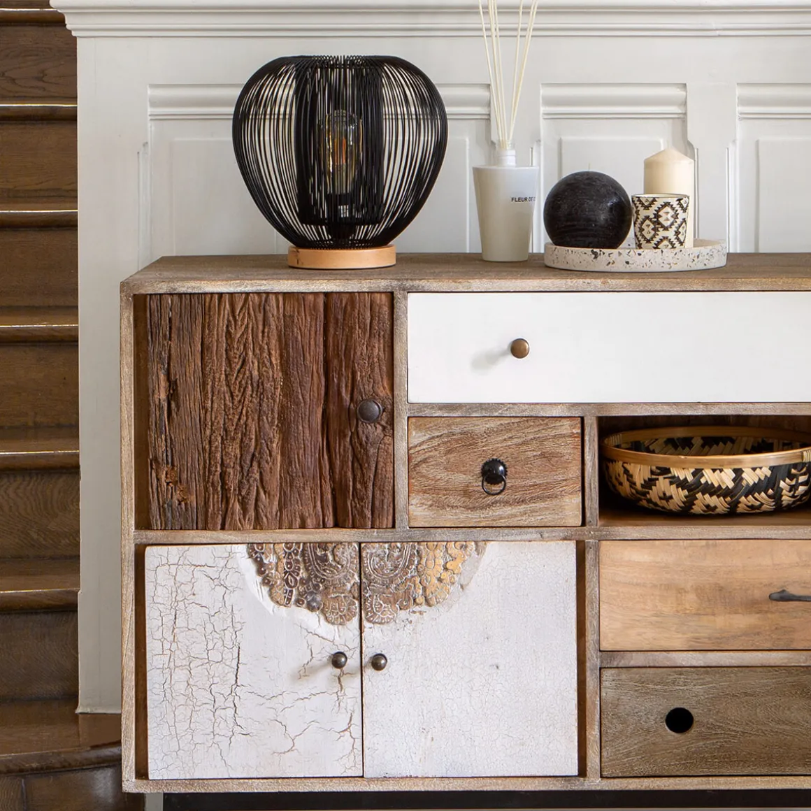 Placez votre lampe « Noda » sur une commode Atmosphera au style ethnique et voyagez tout en restant chez vous.