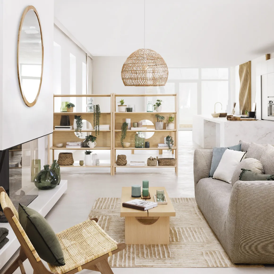 Placez votre miroir rond au-dessus d’un buffet en bois Atmosphera face à une fenêtre afin qu’il donne le sentiment d’agrandir la pièce.