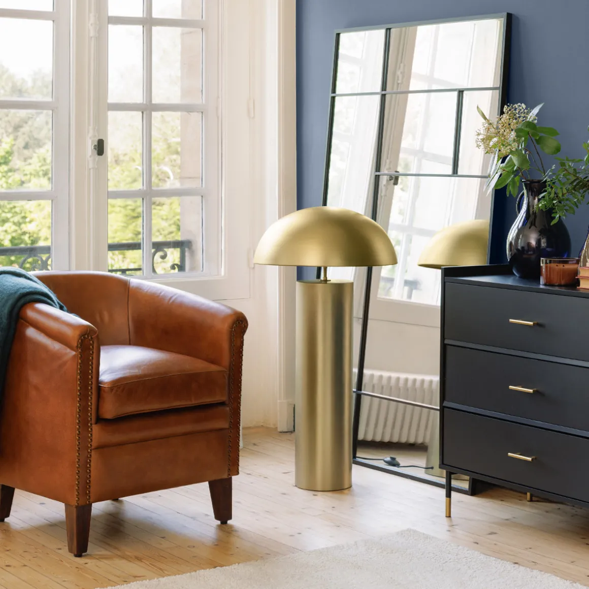 Décorez votre espace dans un style glamour en associant le miroir « Macha » à un confortable fauteuil en velours Atmosphera.