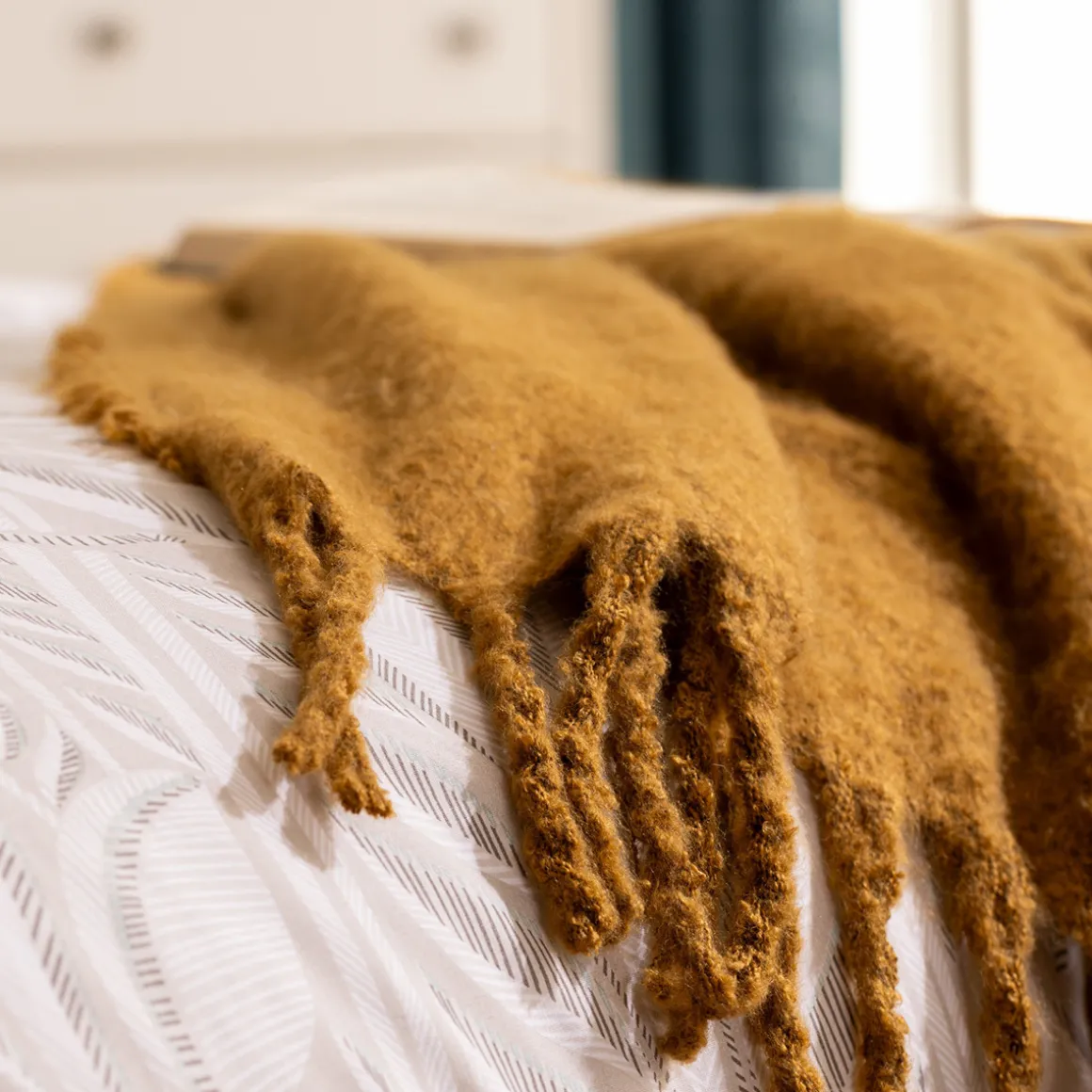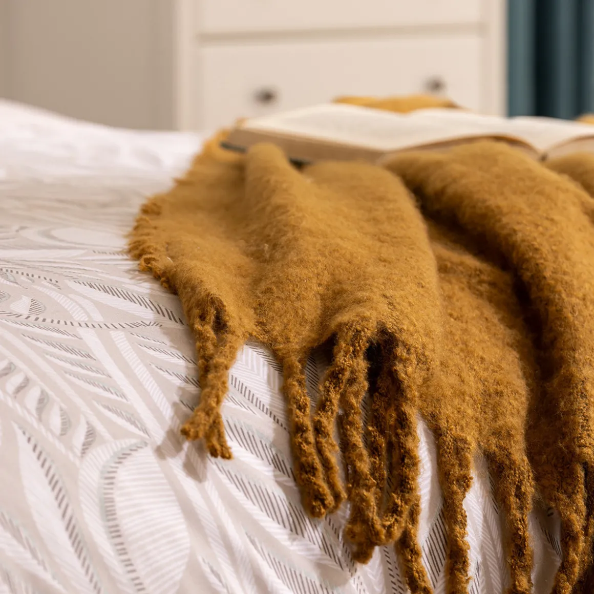 Pour une chambre glamour, ajoutez un tapis en fausse fourrure et une belle lampe sur la table de chevet.