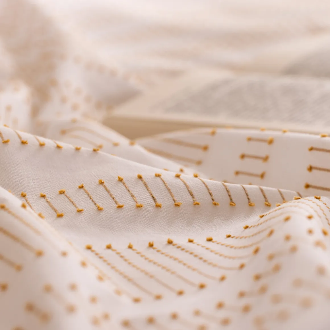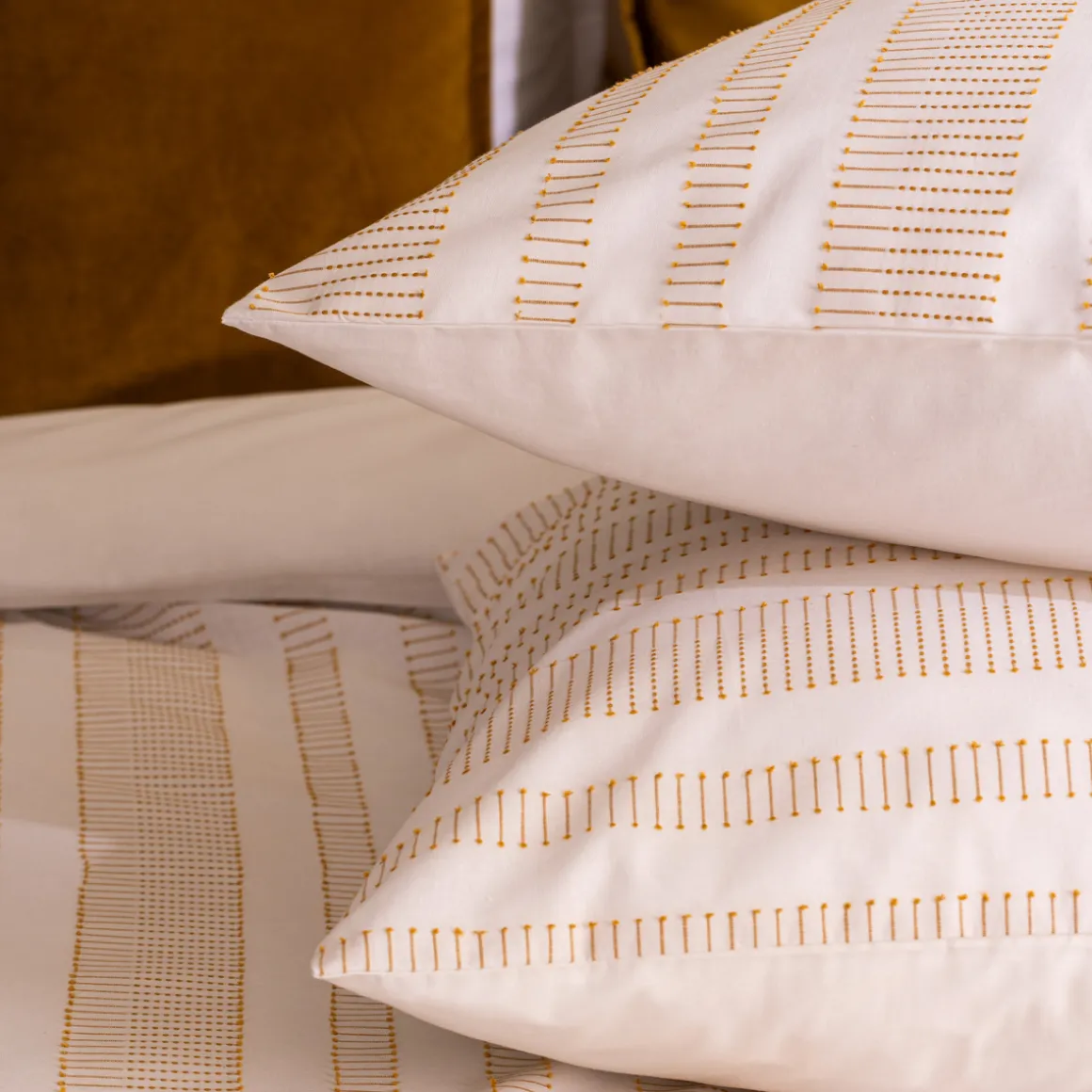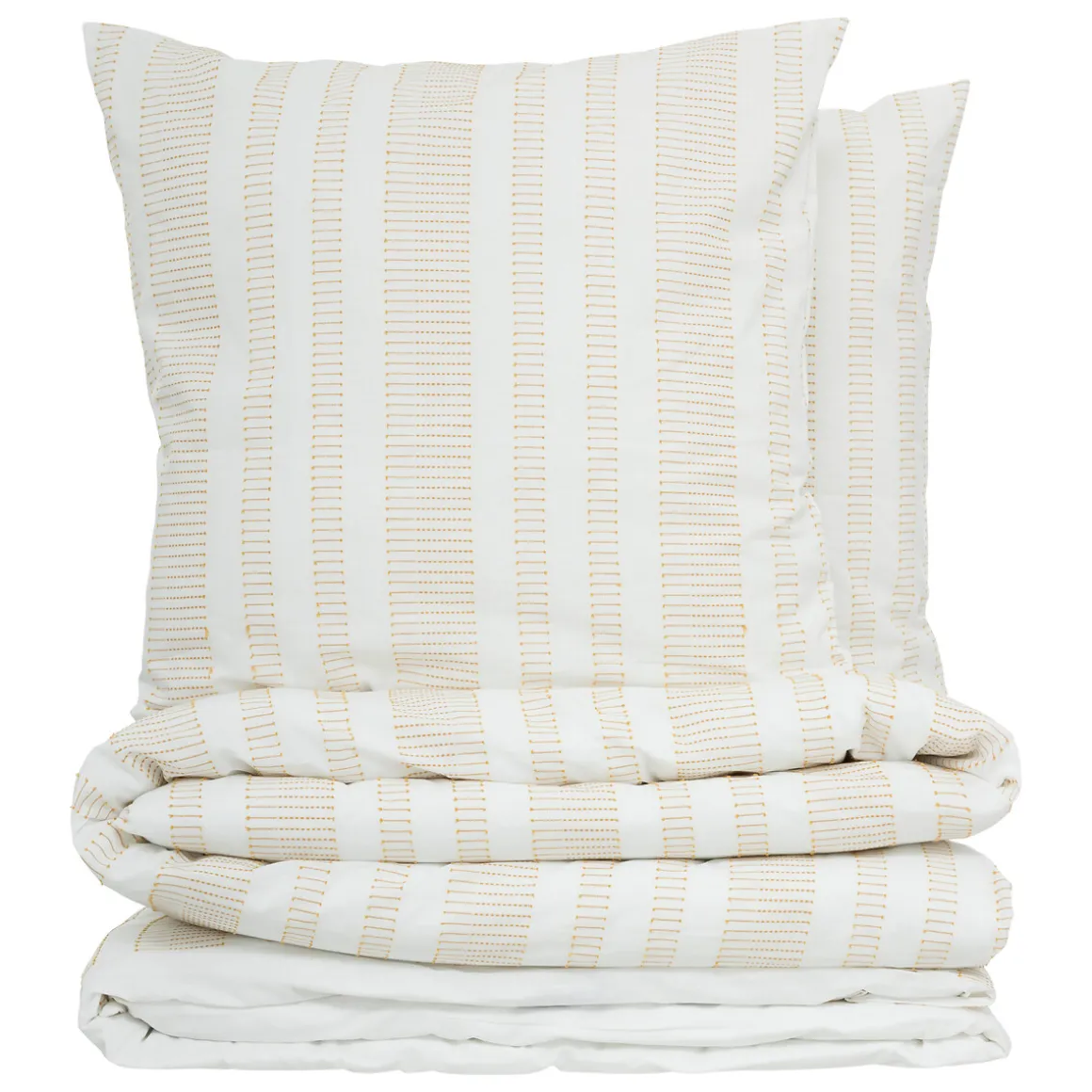 Faite pour un grand lit deux personnes, la parure de lit « Isao » dispose d’une housse de couette avec deux taies carrées. Elle est confectionnée en 100% coton pour vous garantir un rendu doux et robuste. Par ailleurs, le lavage en machine est possible jusqu’à 60°C.