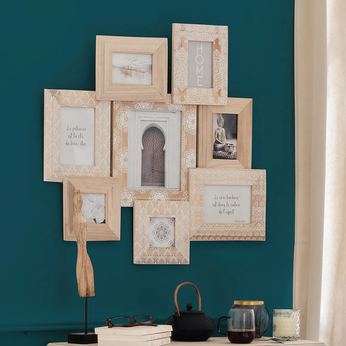 Le pêle-mêle « Emile » est composé de huit cadres en bois de paulownia, offrant des dimensions et des finitions différentes. Impossible de s’en lasser !