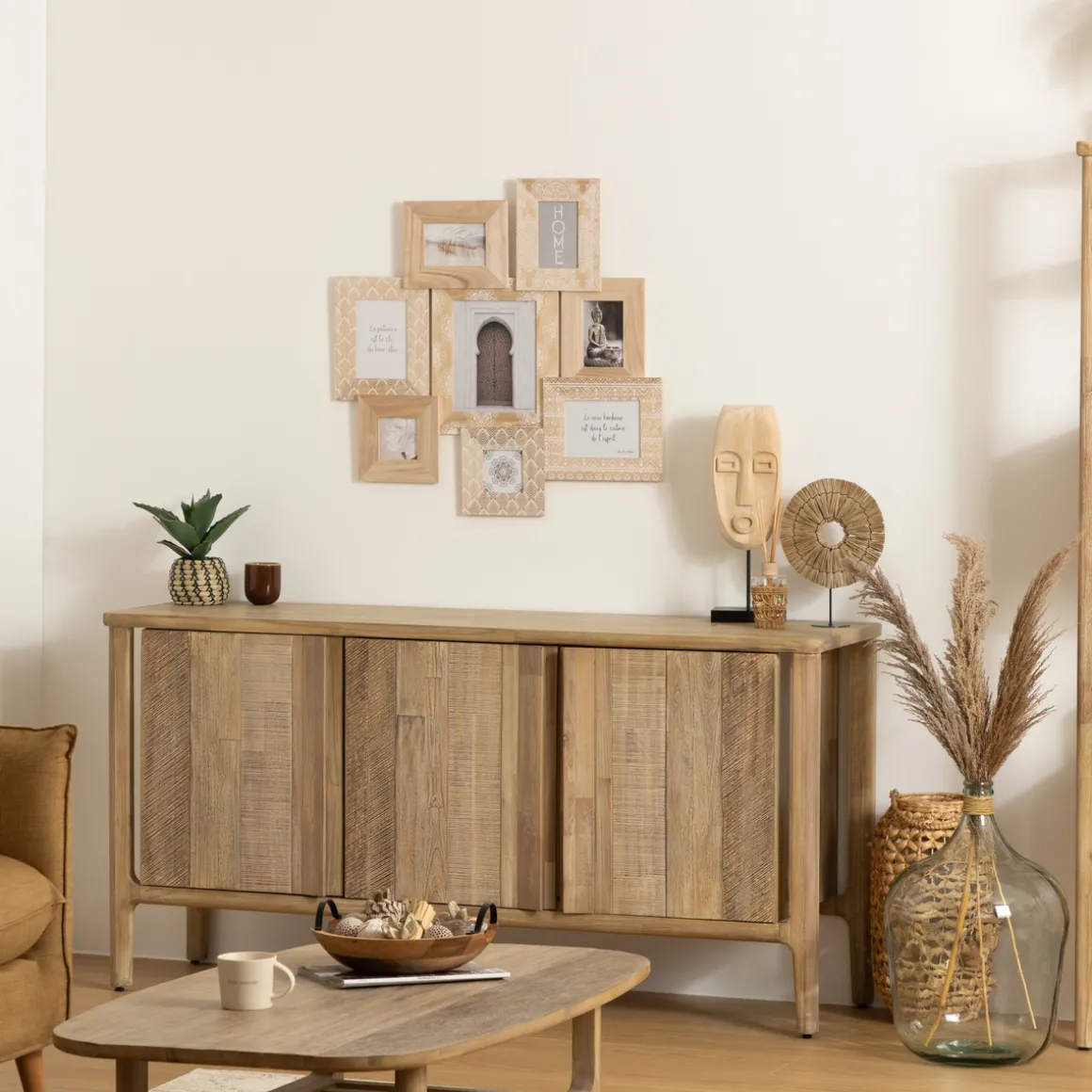 Choisissez une console en bois épurée Atmosphera où vous pourrez disposer quelques petits bibelots rapportés de vacances.