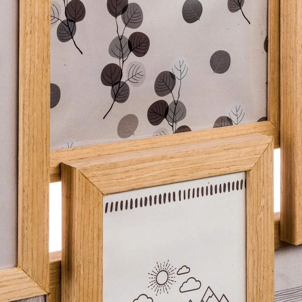 Tout en longueur, ce pêle-mêle est composé de 8 cadres en bois, enchevêtrés et superposés. Long de 58,5 cm pour une hauteur de 29 cm, il est très facile à fixer sur un mur, dans une entrée comme dans une chambre ou un salon. Vous pourrez y exposer vos photos préférées ou des cartes rapportées de vos voyages.
