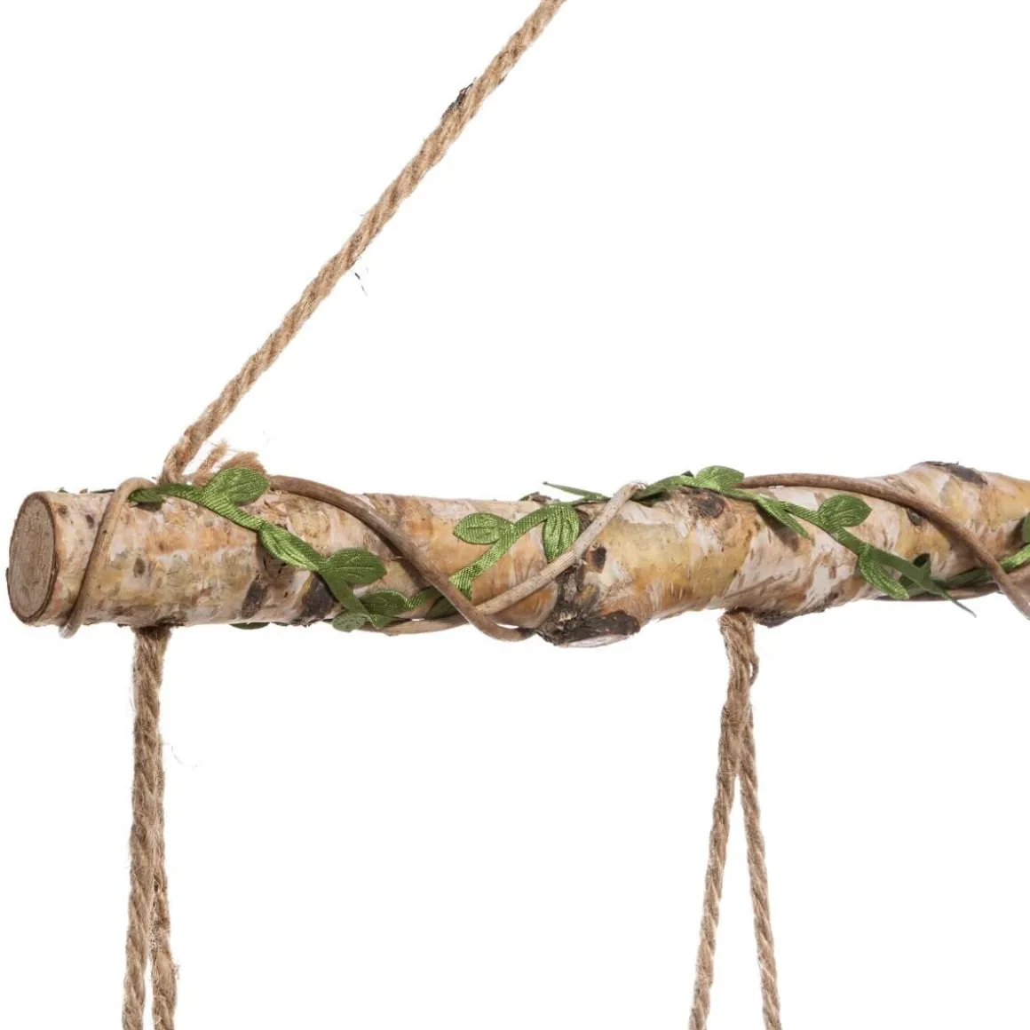 Ce pêle-mêle décoratif est composé de cinq cadres en fibre de bois. Ils sont accrochés par des cordes en jute végétale à une branche de bouleau, elle-même enlacée par un feuillage qui ressemble à une liane. Avec son esprit naturel et son organisation sur deux niveaux, ce pêle-mêle donnera de la personnalité à votre intérieur.