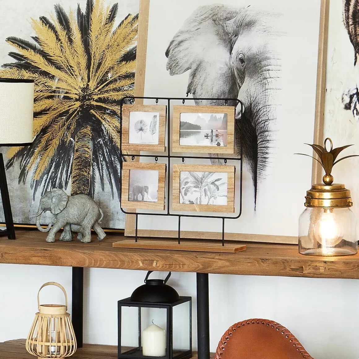 Confectionné en fer et en bois pour la touche naturelle, ce pêle-mêle pourra recevoir jusqu’à huit photos dans ses quatre cadres recto verso. Rassemblez vos plus beaux clichés, et changez d’images en retournant simplement les cadres. De taille compacte, le pêle-mêle « Nomad » pourra être posé sur une étagère, sur un bureau ou sur une commode.