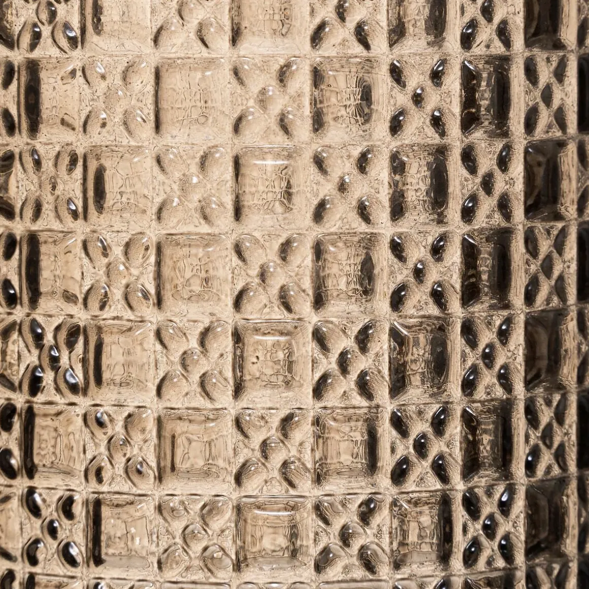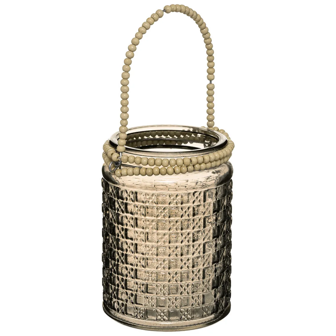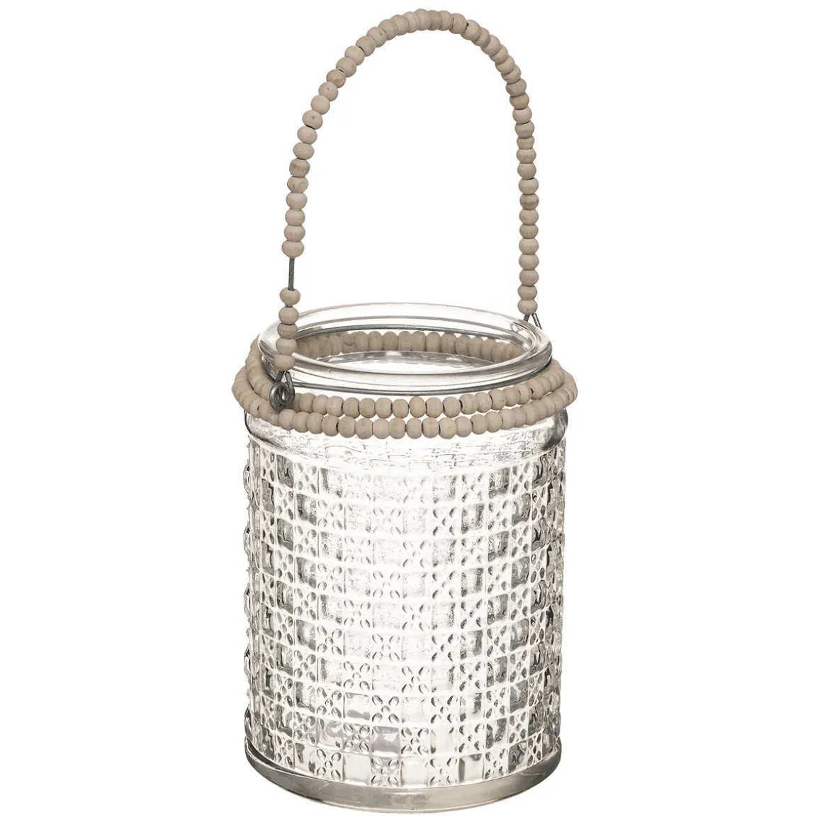 Cylindrique, le photophore « Tropiques » est réalisé en verre et proposé dans deux teintes. Décoré de motifs qui produiront une jolie lumière, il dispose d’une grande poignée en métal agrémentée de perles en bois d’érable, qui contournent également tout le col. Avec sa hauteur de 13 cm, cet objet déco lumineux se pose, ou se suspend.