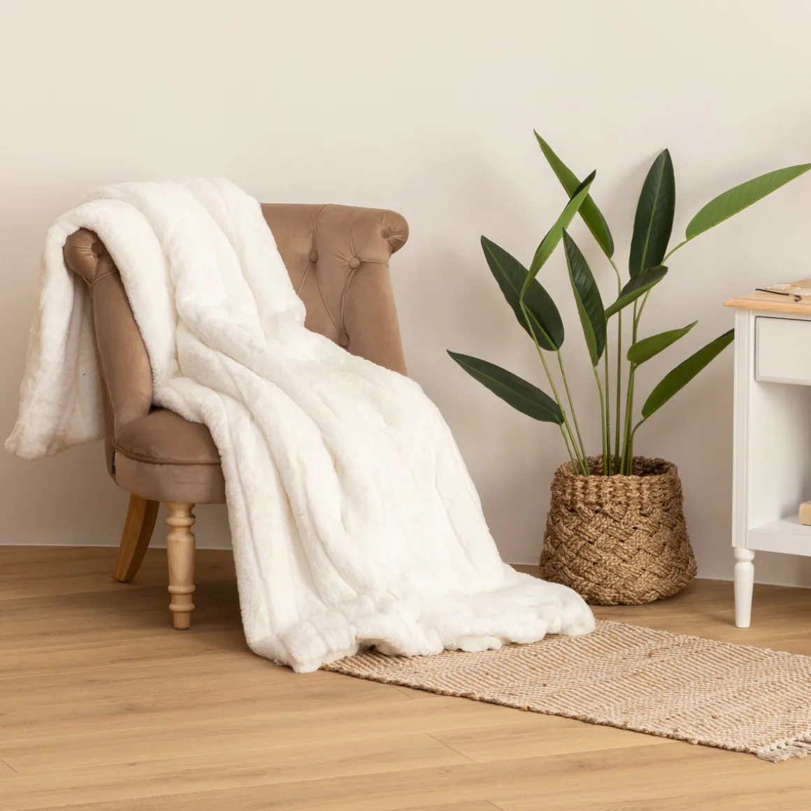 Laissez-vous gagner par la douceur en mariant ce plaid à des coussins Atmosphera assortis.