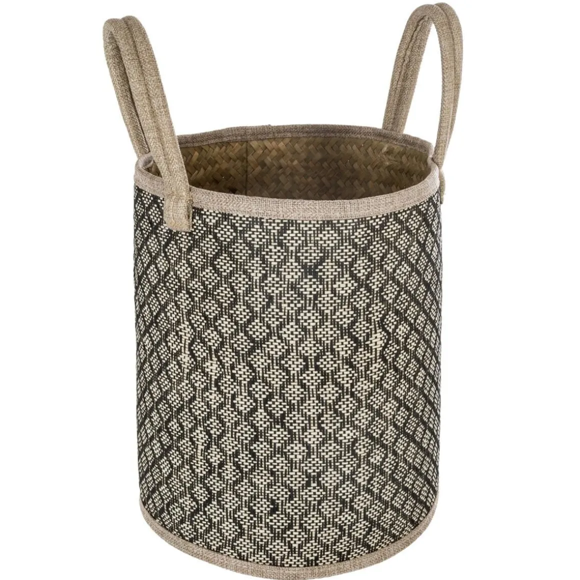 Ces 3 paniers « Nomade » se distinguent par leur double tressage. L’intérieur est en roseau travaillé de manière classique, tandis que l’extérieur est en papier minutieusement tressé de manière à faire apparaitre un motif graphique.