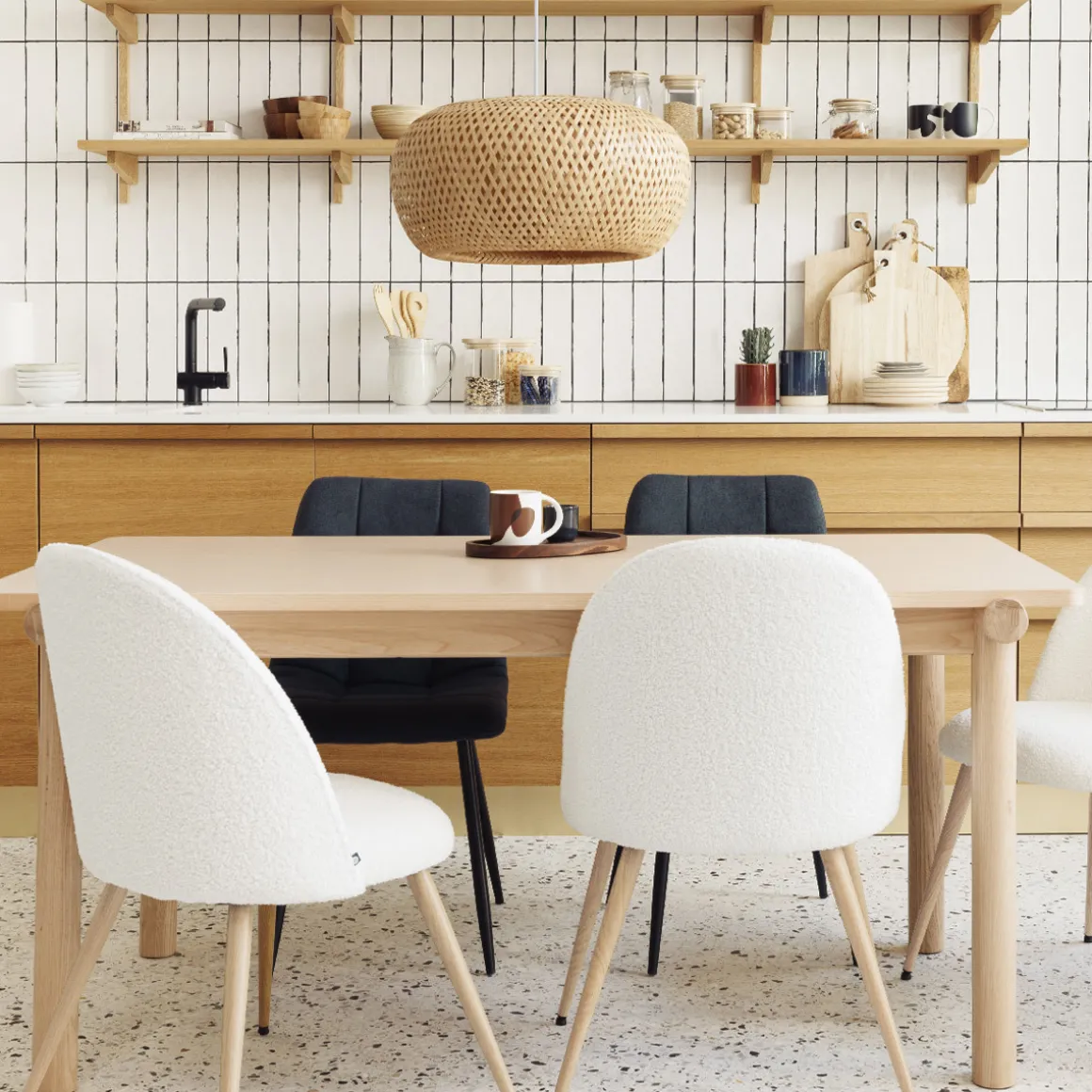 Avec son tressage fin, la suspension « Nam » diffuse une lumière tamisée propice à la relaxation. Les motifs quadrillés dansent sur les murs au rythme du balancement de votre lampe.